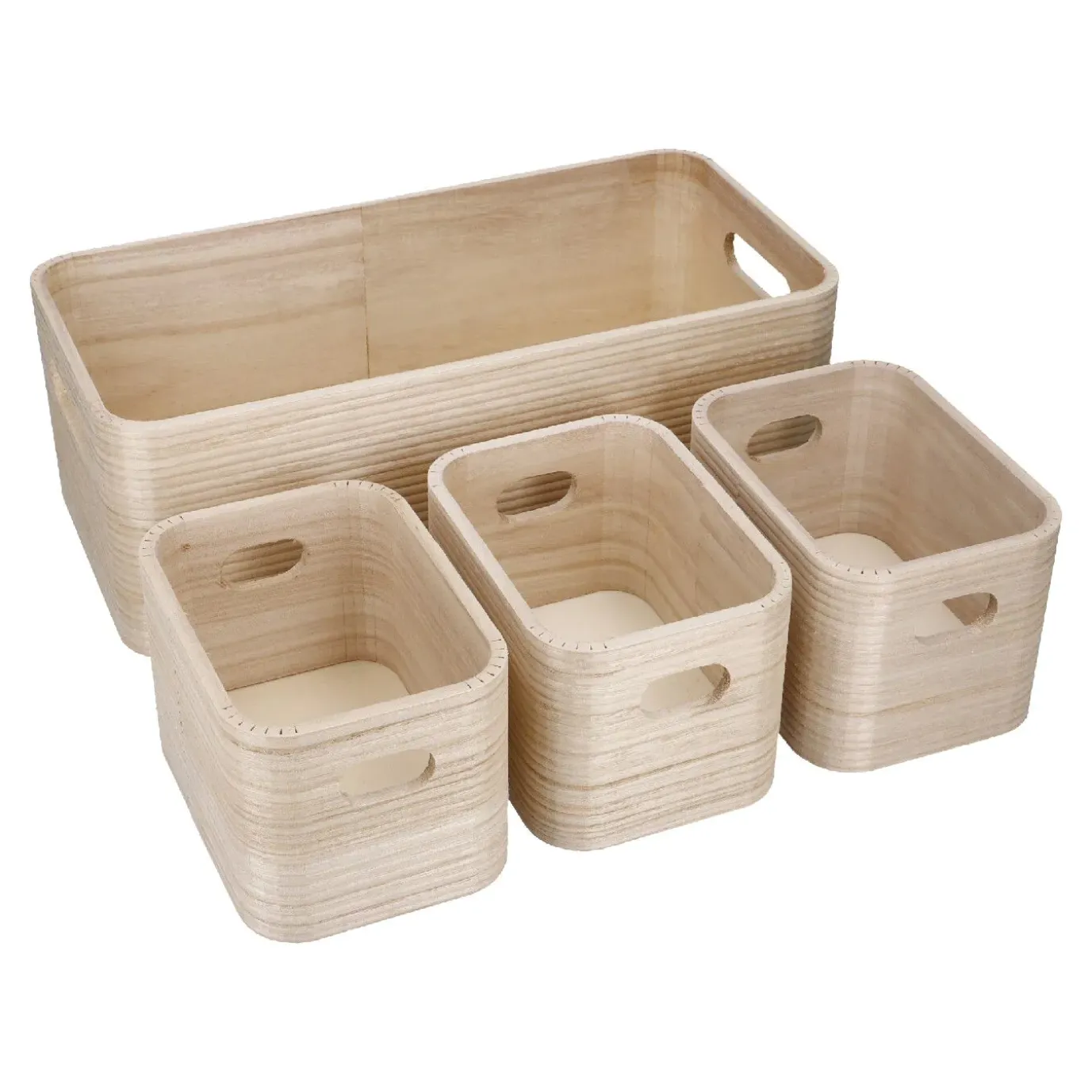 Vier Kisten zum Ordnen, Sortieren oder Dekorieren.