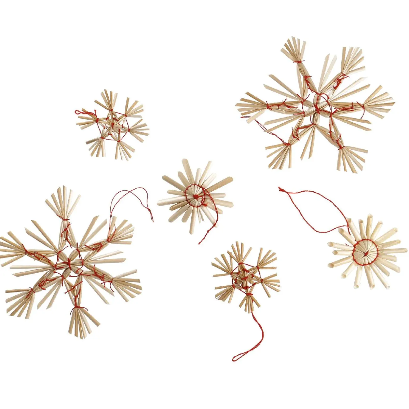 9er Set Strohanhänger Sterne, Rot
