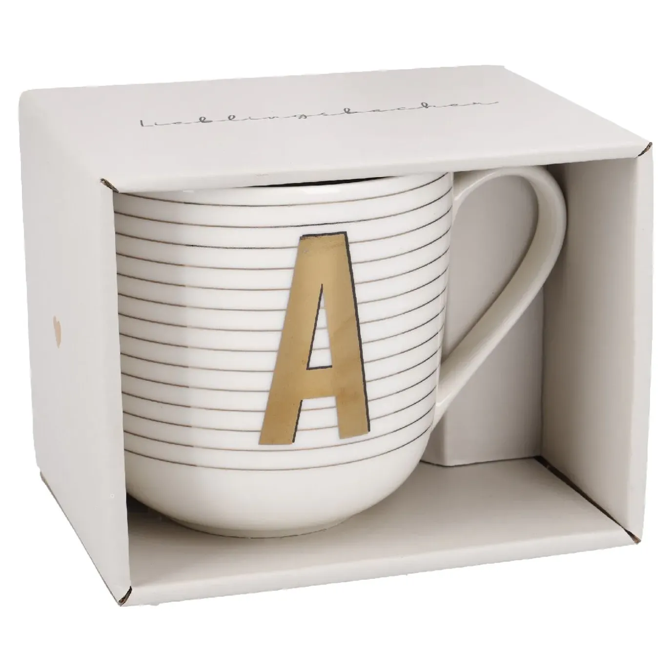 Dieser schöne Porzellanbecher mit dem Buchstaben A ist das perfekte Geschenk für jeden Anlass! In einem schlichten Weiß mit goldenen Streifen ist dieser Becher ein echter Blickfang. Er wird durch die Geschenkverpackung zu einem besonderen Geschenk für deine Liebsten oder für dich selbst. Wähle deinen Lieblingsbuchstaben und genieße deinen Morgenkaffee oder Tee am Abend.