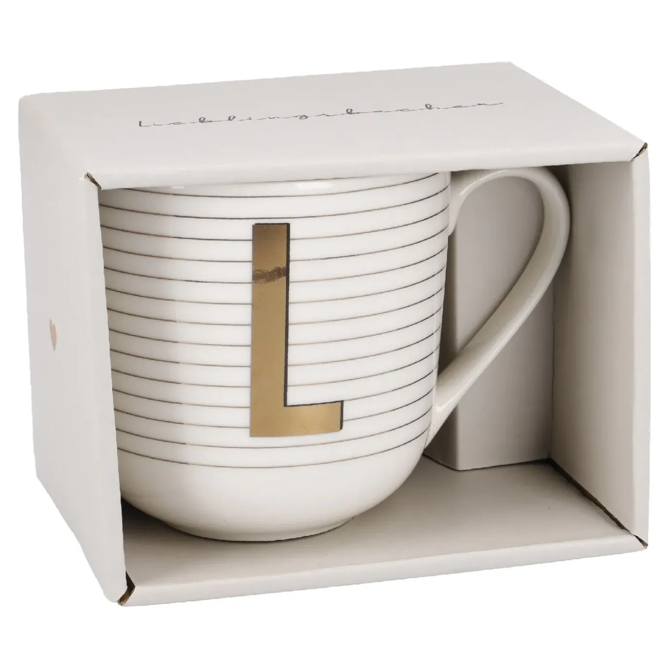 Dieser schöne Porzellanbecher mit dem Buchstaben L ist das perfekte Geschenk für jeden Anlass! In einem schlichten Weiß mit goldenen Streifen ist dieser Becher ein echter Blickfang. Er wird durch die Geschenkverpackung zu einem besonderen Geschenk für deine Liebsten oder für dich selbst. Wähle deinen Lieblingsbuchstaben und genieße deinen Morgenkaffee oder Tee am Abend.