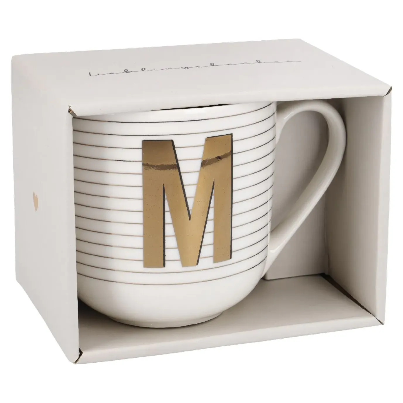 Dieser schöne Porzellanbecher mit dem Buchstaben M ist das perfekte Geschenk für jeden Anlass! In einem schlichten Weiß mit goldenen Streifen ist dieser Becher ein echter Blickfang. Er wird durch die Geschenkverpackung zu einem besonderen Geschenk für deine Liebsten oder für dich selbst. Wähle deinen Lieblingsbuchstaben und genieße deinen Morgenkaffee oder Tee am Abend.