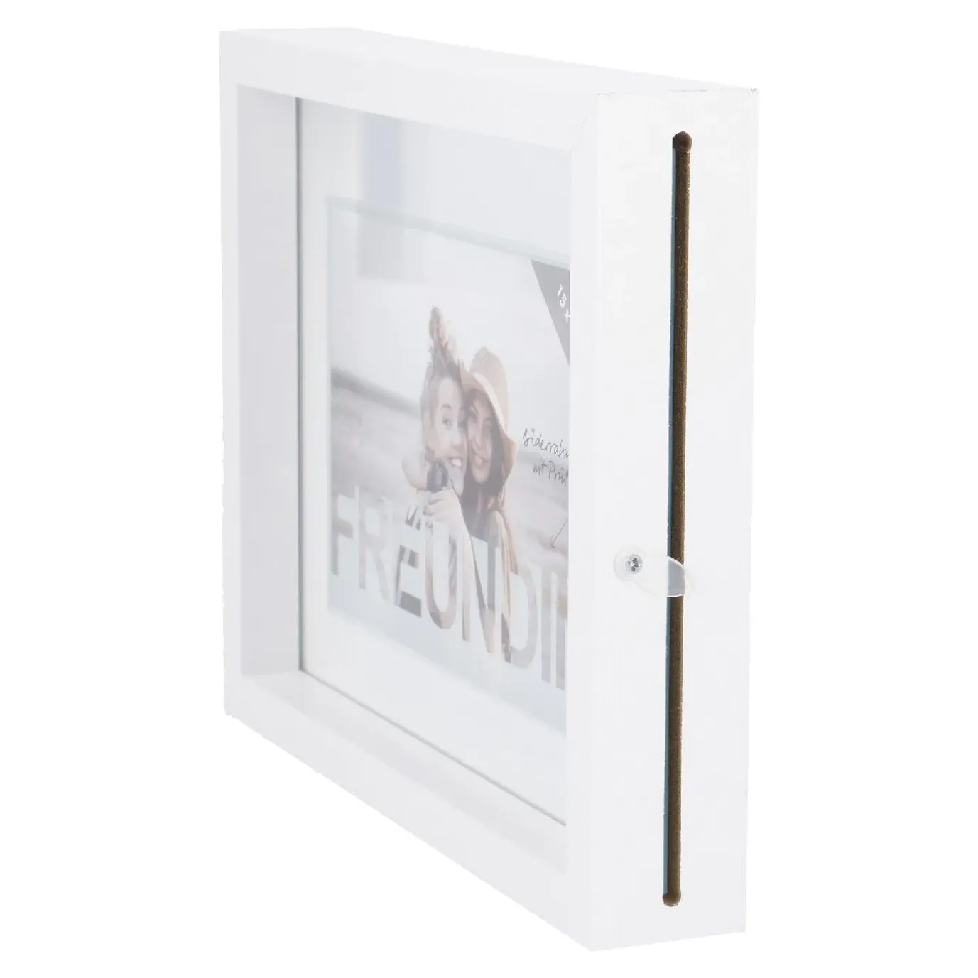 Der Bilderrahmen kann auf seiner Tiefe hingestellt werden.