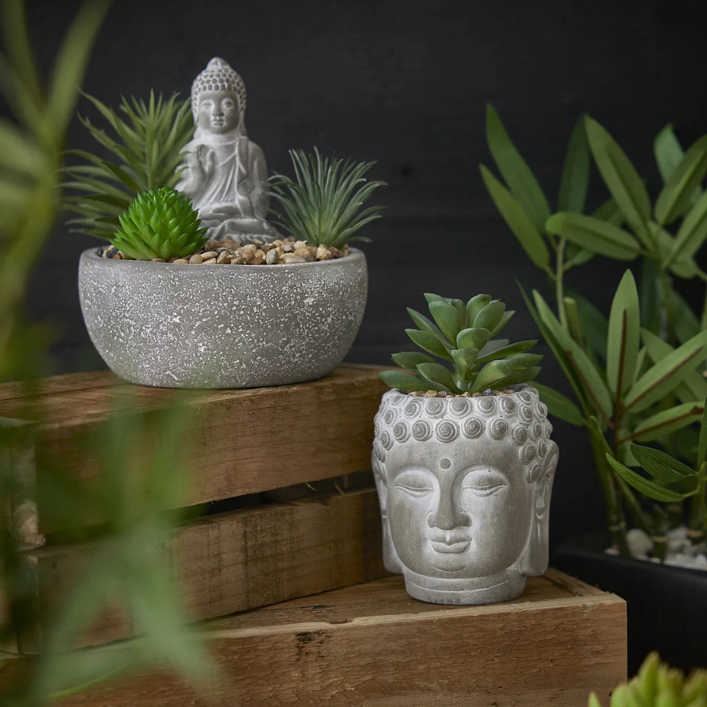 Deko-Objekt Buddha Mit Sukkulente, Grau/grün, 12 Cm
