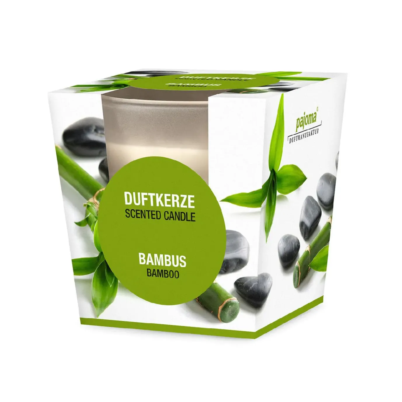 Diese Duftkerze ist nicht nur gemütlich sondern vebreitet auch in deinem Zuhause einen angenehmen Geruch. In ihrem elegant satinierten Glas mit Bambus-Duft passt sie einfach in jedem Raum – egal wo du deinen Lieblingsduft riechen möchtest.Enthält: Reaktionsmasse aus 1-(1,2,3,4,5,6,7,8-Octahydro-2,3,8,8-tetramethyl-2-naphthyl)ethan-1-on und 1-(1,2,3,4,6,7,8,8a-Octahydro-2,3,8,8-tetramethyl-2-naphthyl)ethan-1-on und 1-(1,2,3,5,6,7,8,8a-Octahydro-2,3,8,8-tetramethyl-2-naphthyl)ethan-1-on, 2-(4-tert-Butylbenzyl)propionaldehyd, BenzylsalicylatKann allergische Hautreaktionen verursachen.Vor Gebrauch bitte beachten: Kerze nie unbeaufsichtigt brennen lassen. Von Kindern fern halten. Flamme vor Zugluft schützen. Kerzenglas stes auf wärmeunempfindliche Oberflächen stellen, da sich das Glas besonders bei langer brenndauer erwärmt. Die Kerze brennt am Besten, wenn ihr Docht vor jedem Anzünden auf 0,5 cm gekürzt wird. Die Kerze ist zum Gebrauch in Innenräumen vorgesehen. Brenndauer circa 25 h.