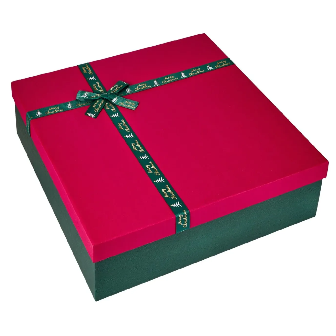 Geschenkkarton Schleife, Dunkelgrün/rot, 45 X 45 Cm