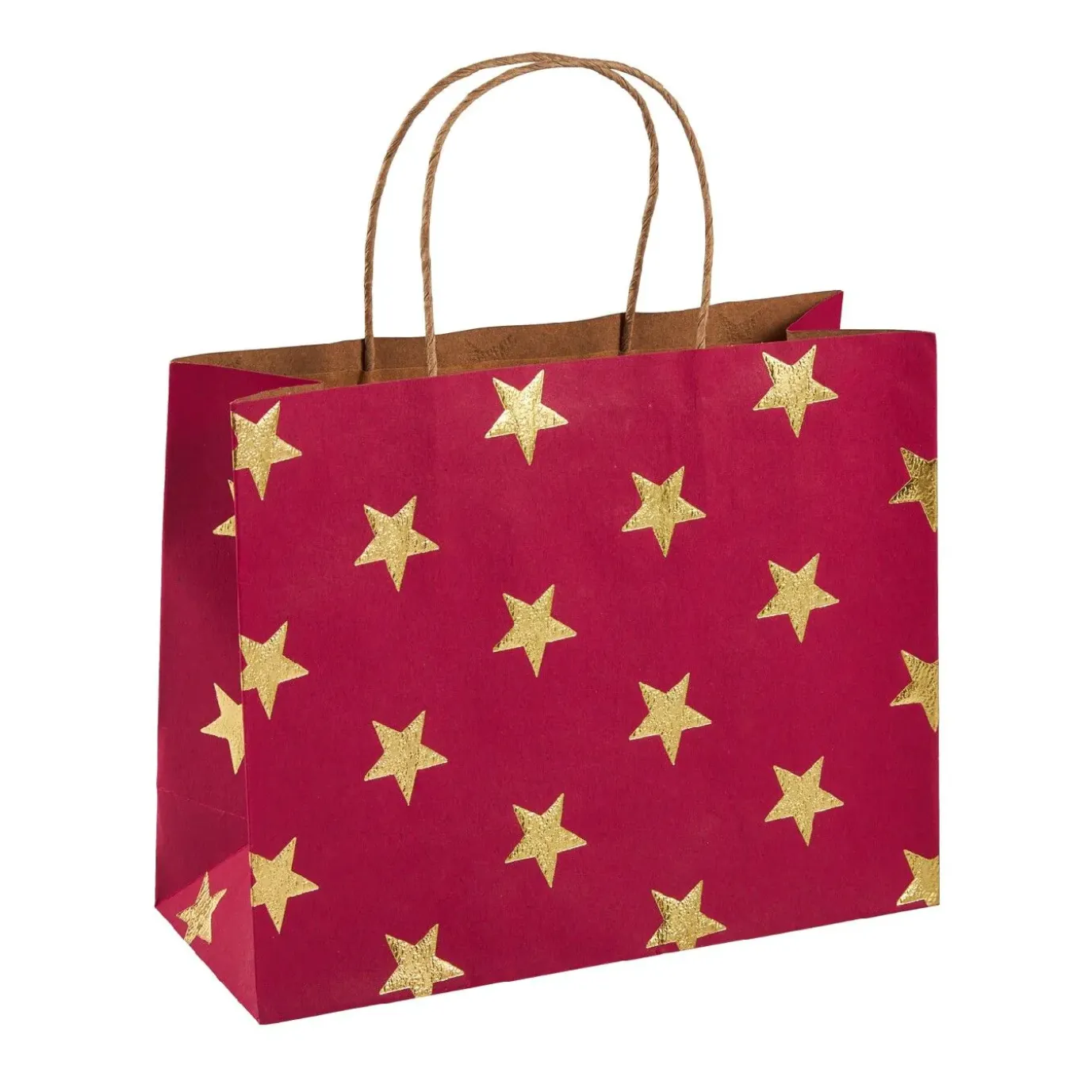 Geschenktüte Prägung, Stern/rot/gold, 14.5 X 18.5 Cm