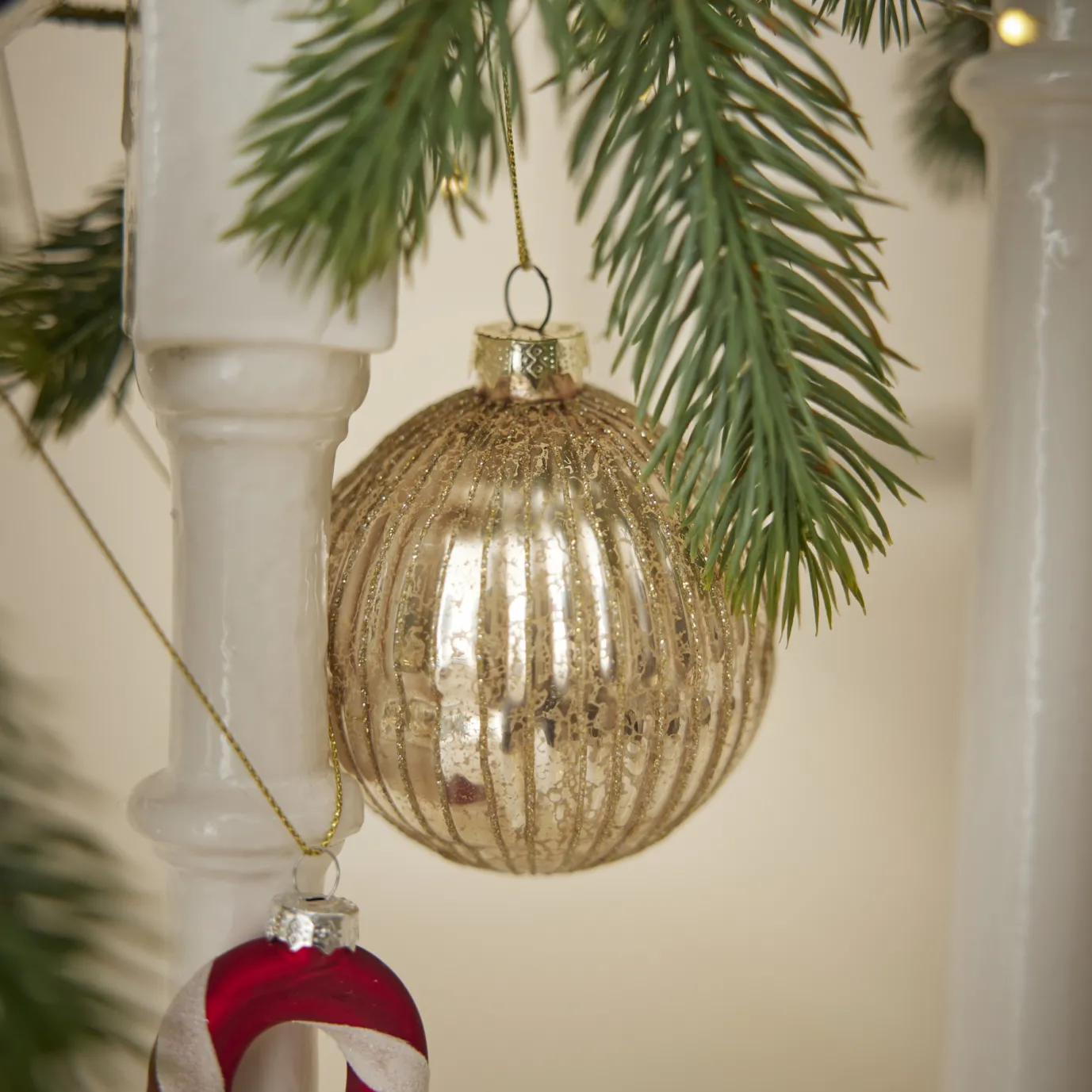 Glaskugel Dekor, Rillen/gold, 8 Cm