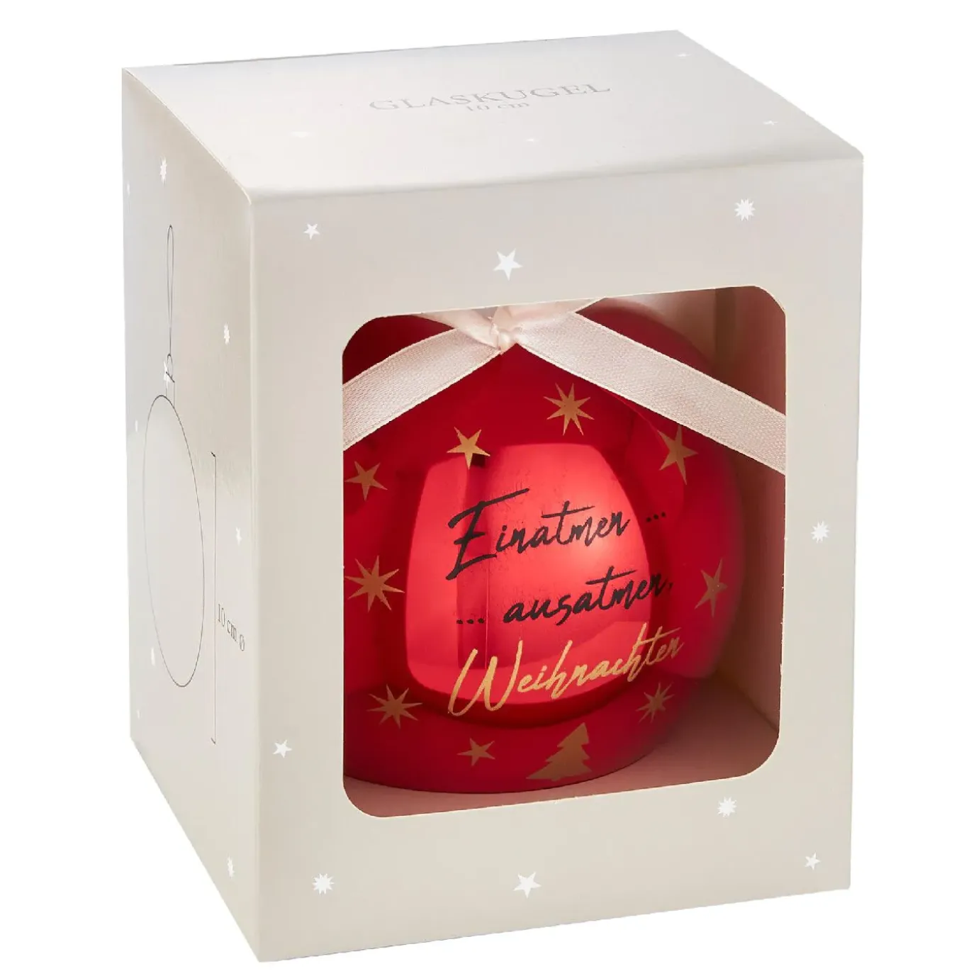 Glaskugel Spruch, Einatmen/rot/glänzend, 10 Cm