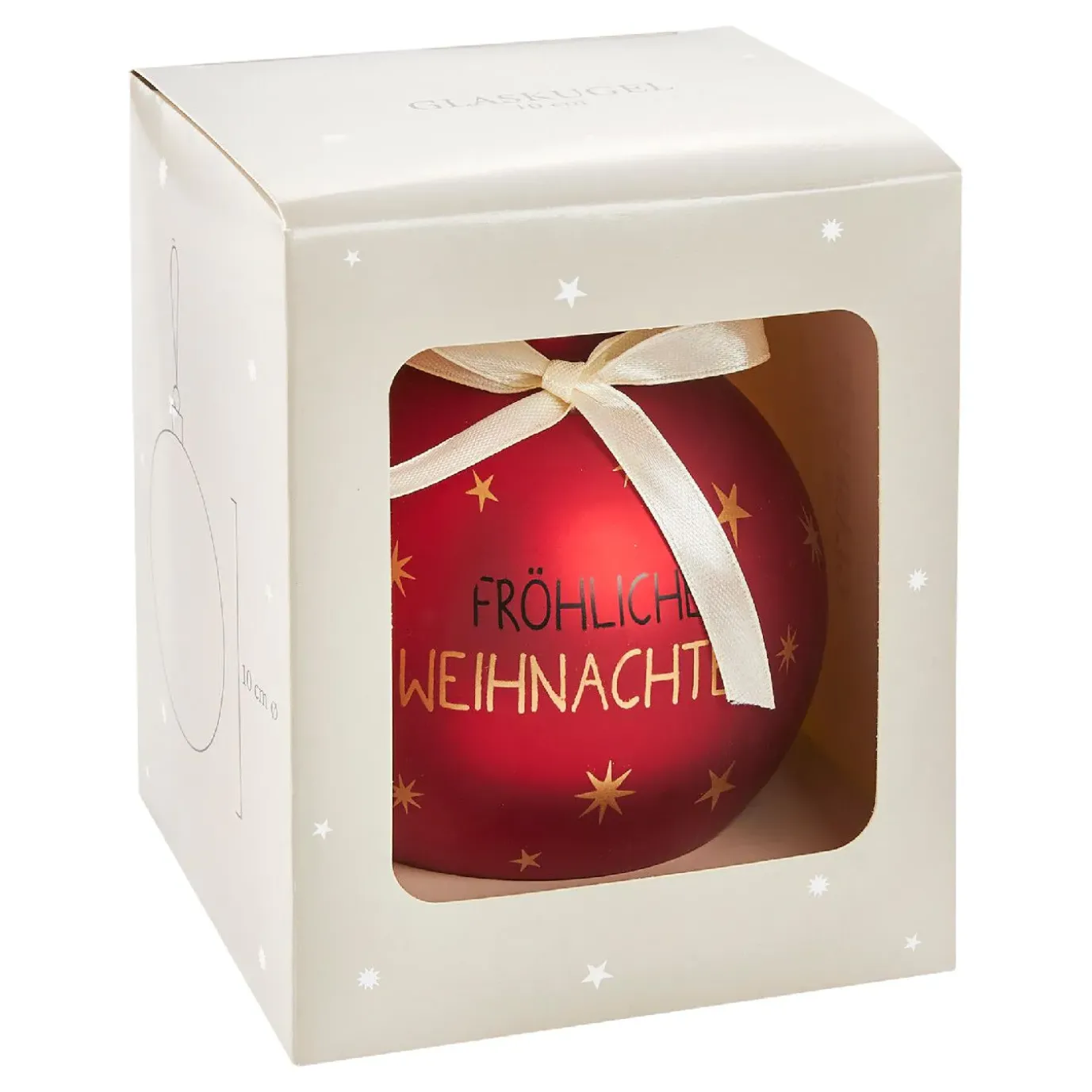 Glaskugel Spruch, Fröhliche/rot/matt, 10 Cm
