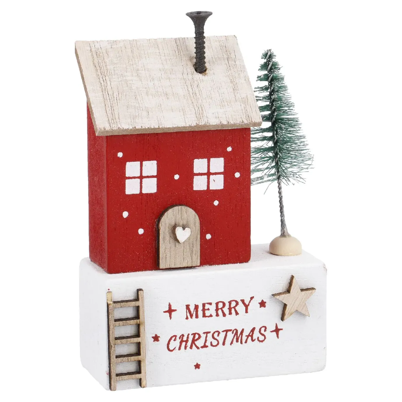 Haus Mit Tanne, Weiß/rot, 10.5 Cm