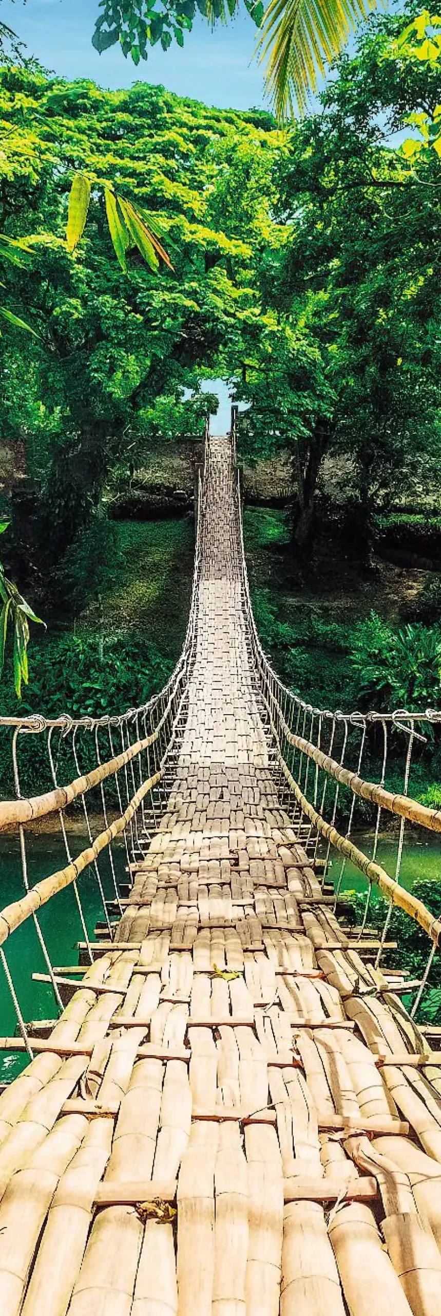 Aufregendes Poster mit einer Hängebrücke mitten im Dschungel.
