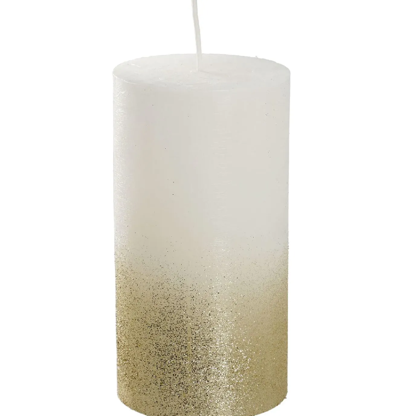 Kerze Rustik/Glitter, Weiß/gold, 7 X 13 Cm