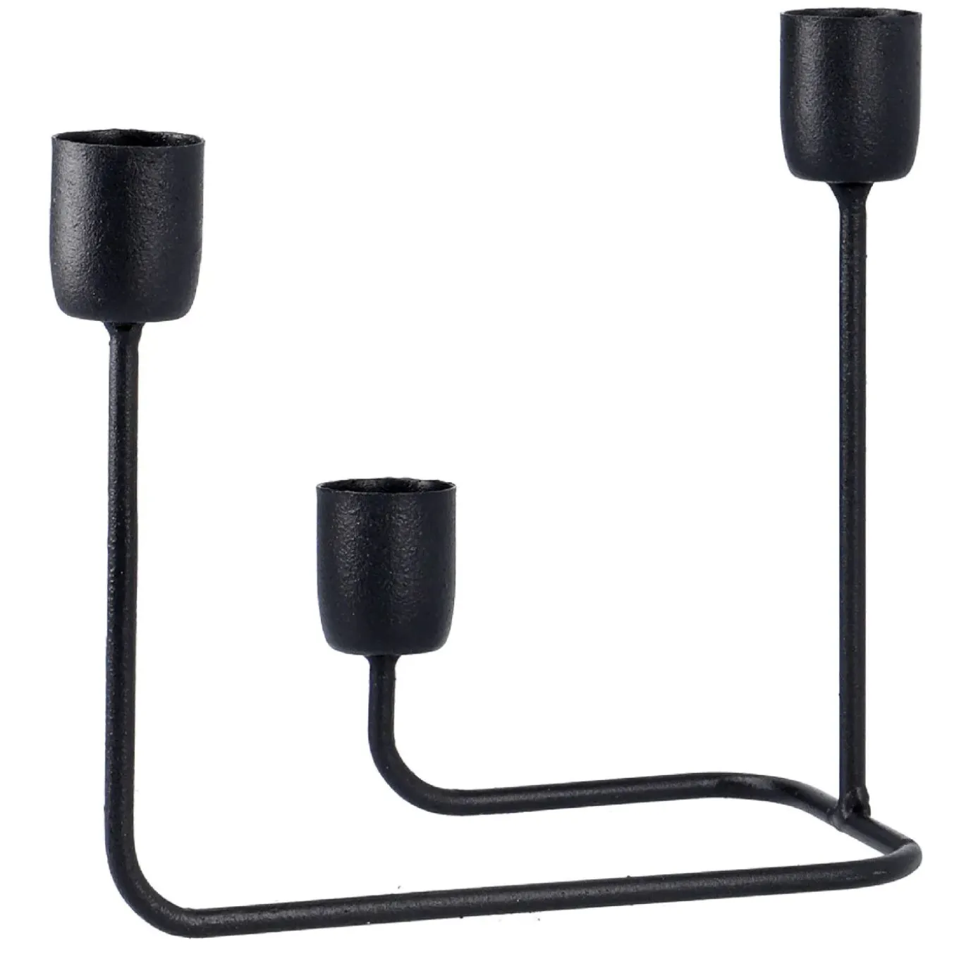 Kerzenhalter 3 Stabkerzen, Schwarz Matt