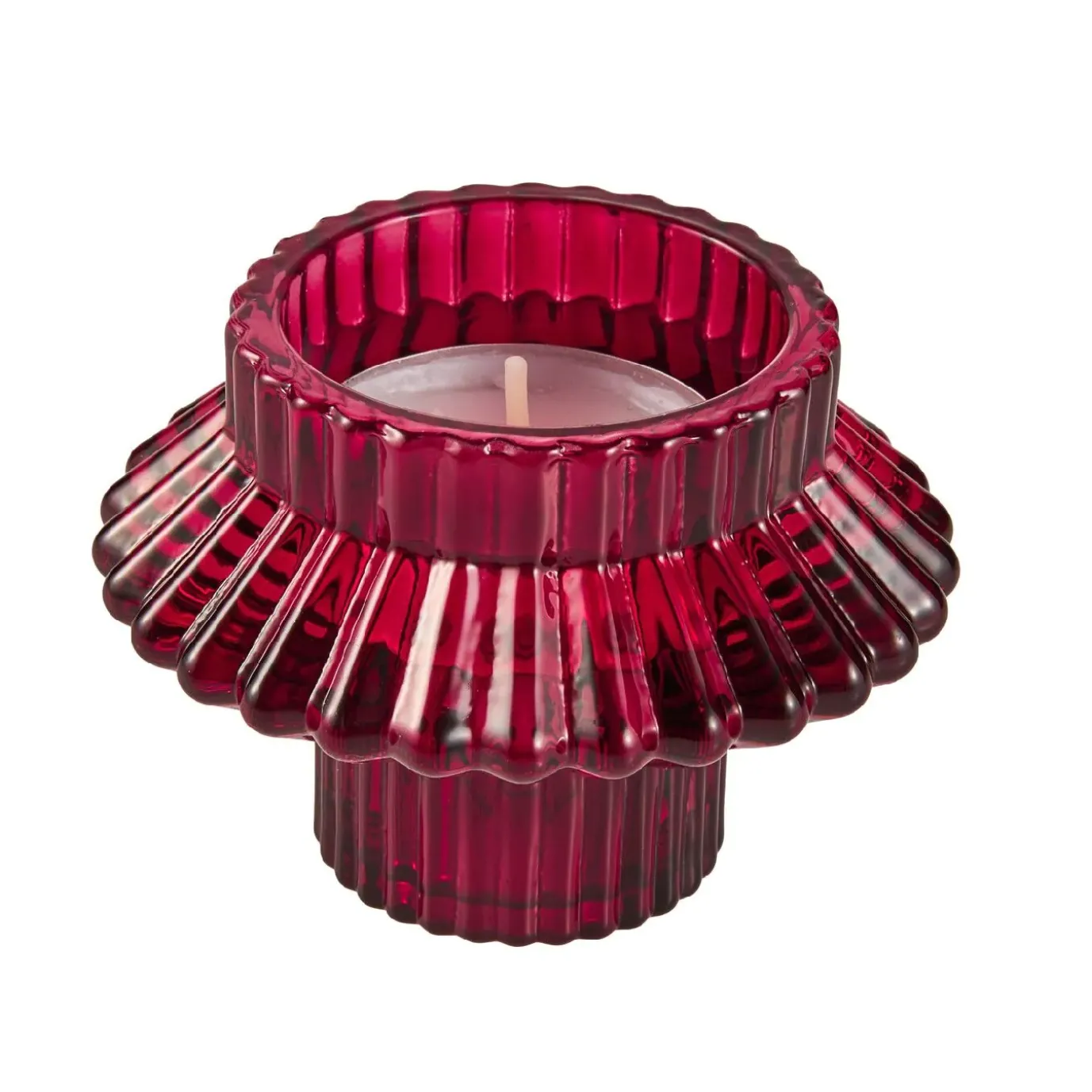 Kerzenhalter Relief, Stabkerze/Teelicht, Dunkelrot, 8 X 5.5 Cm