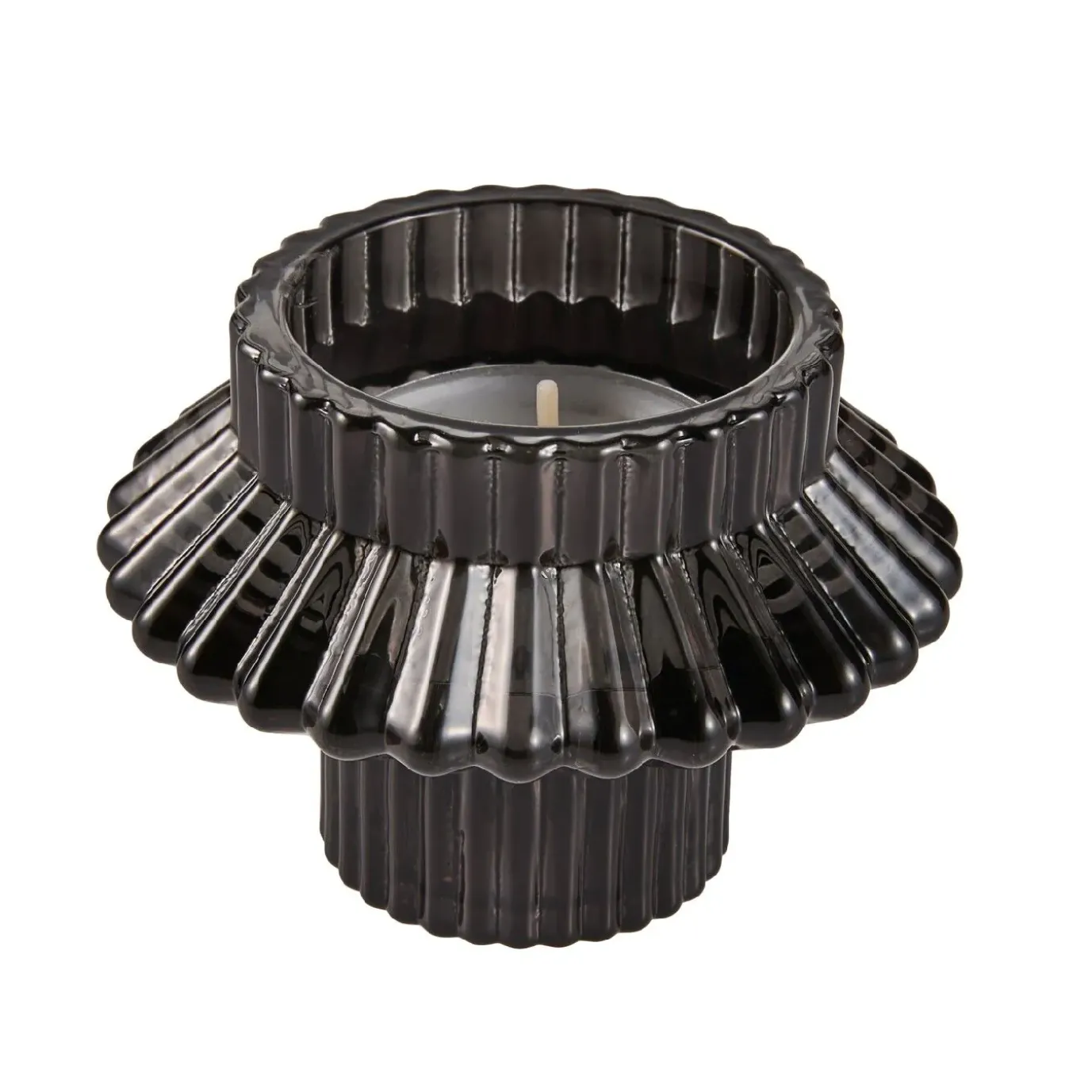 Kerzenhalter Relief, Stabkerze/Teelicht, Schwarz, 8 X 5.5 Cm