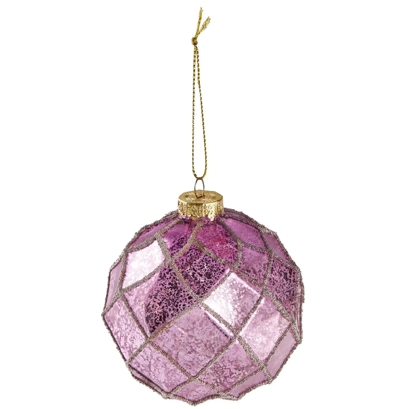 Kugel Relief, Quadrate/lila/gold, 10 Cm