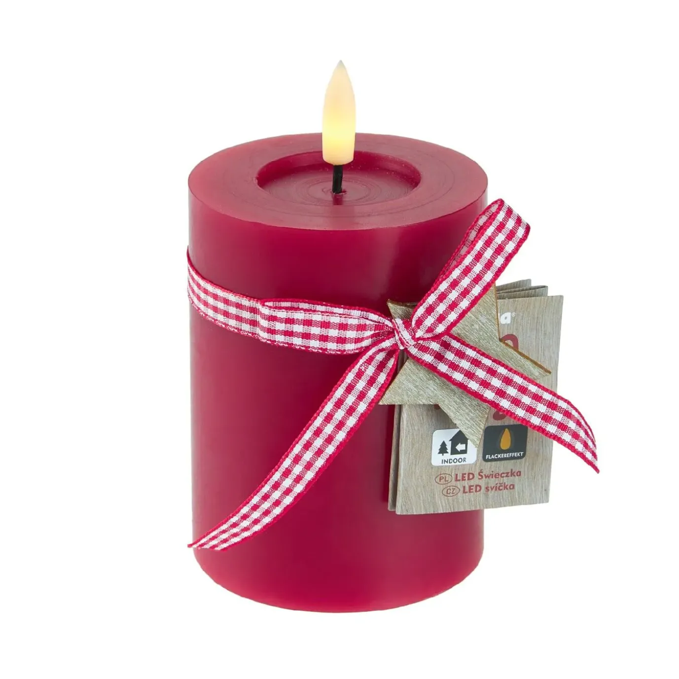 LED-Kerze Schleifenband, Stern/rot, 7.5 X 12.5 Cm