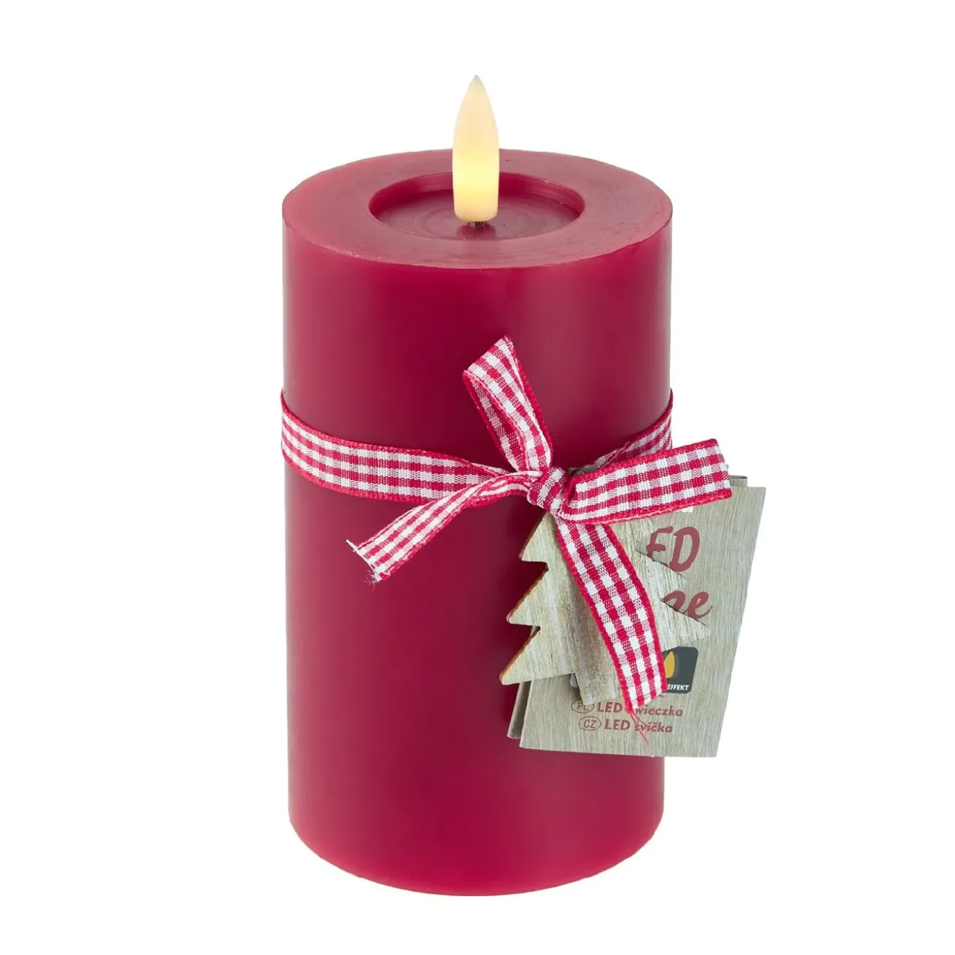LED-Kerze Schleifenband, Tanne/rot, 7.5 X 10 Cm
