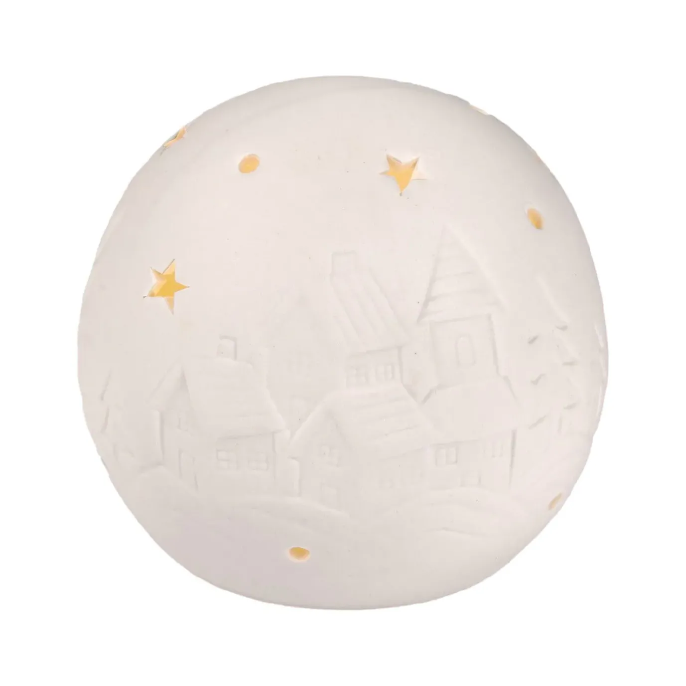 Eine runde Sache! Mit dieser LED-Kugel holst du dir ein wunderschönes Deko-Highlight in dein Zuhause. Die Kugel ist mit einer Landschaft verziert und hat Löcher in Form von Kreisen und Sternen. Technische Daten: Warm-weiß leuchtende LED-LampeInkl. 3x AG13-Batteriern (im Lieferumfang enthalten)Inkl. Timerfunktion 6 Std/18 Std-on/off