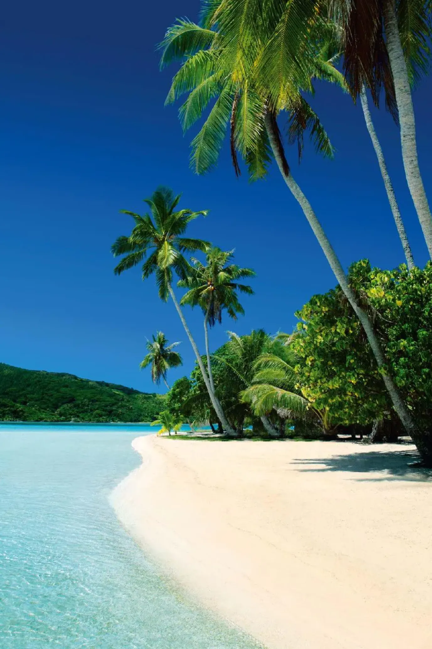 Urlaubsfeeling pur. Türkisblaues Wasser, kilometerlanger Sandstrand und jede Menge Palmen. Hol dir mit diesem Poster das Urlaubsparadies nach Hause.