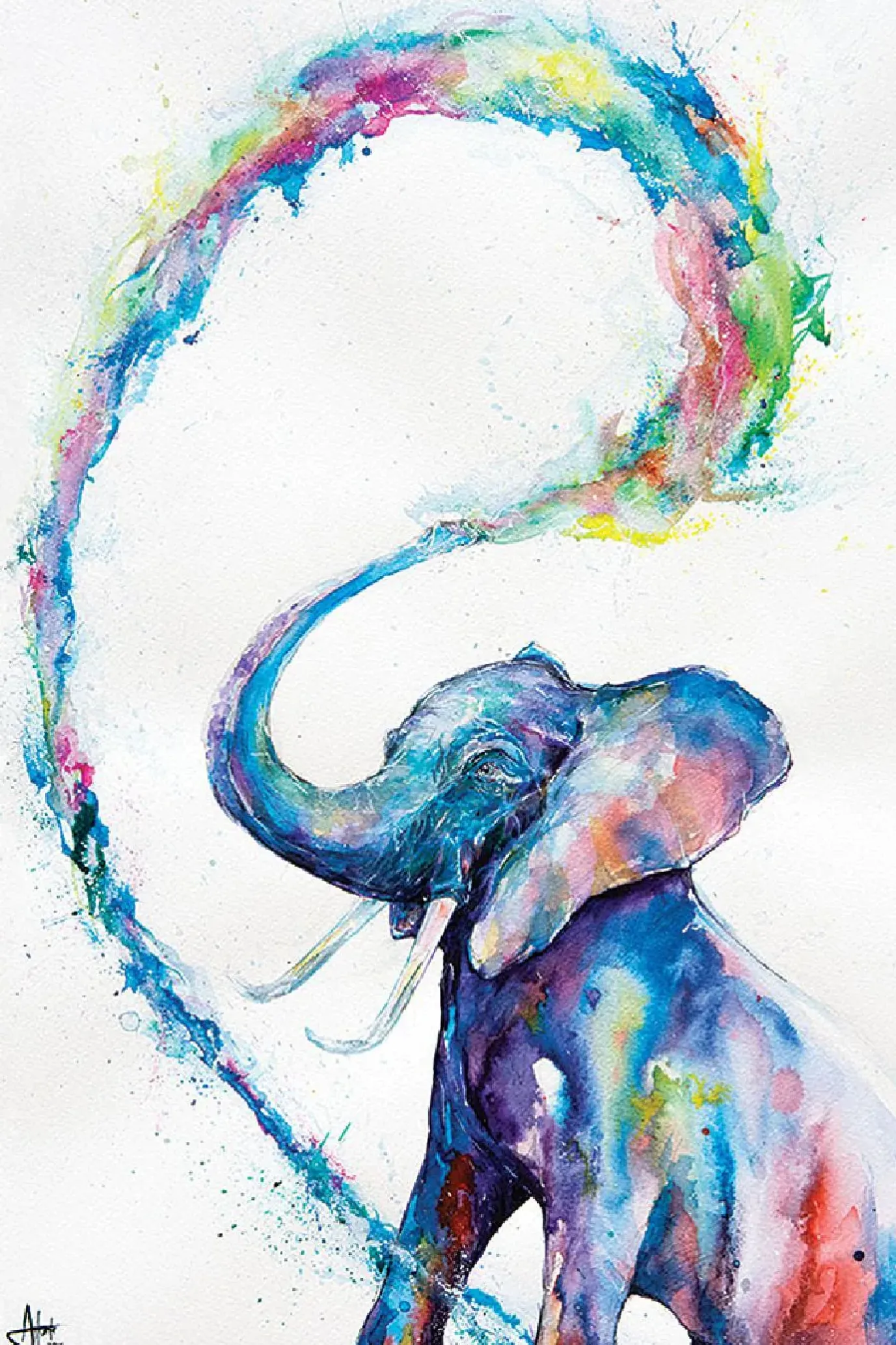 Farbenfrohes Poster mit einem Elefanten. Die ausdrucksstarken Farben lassen den Elefanten erstrahlen und sorgen für einen tollen Hingucker.