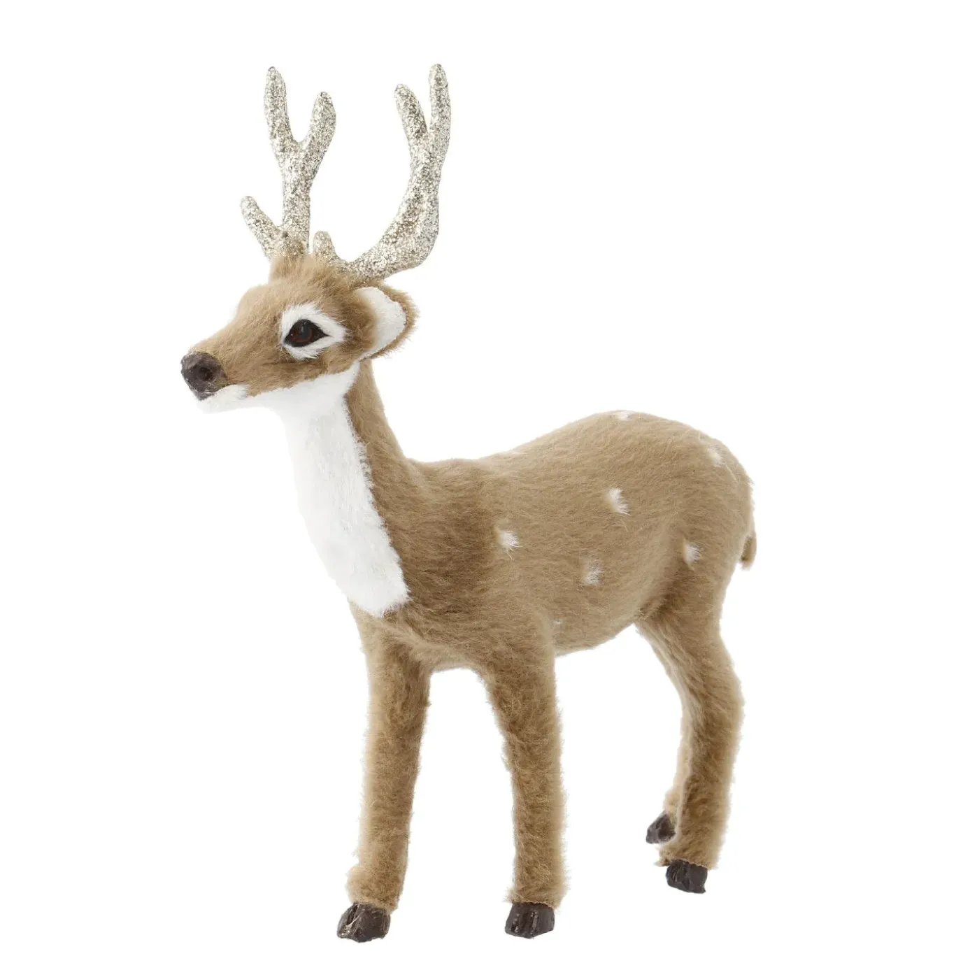Rentier Fell/Glitzer, Stehend, Braun, 16 Cm