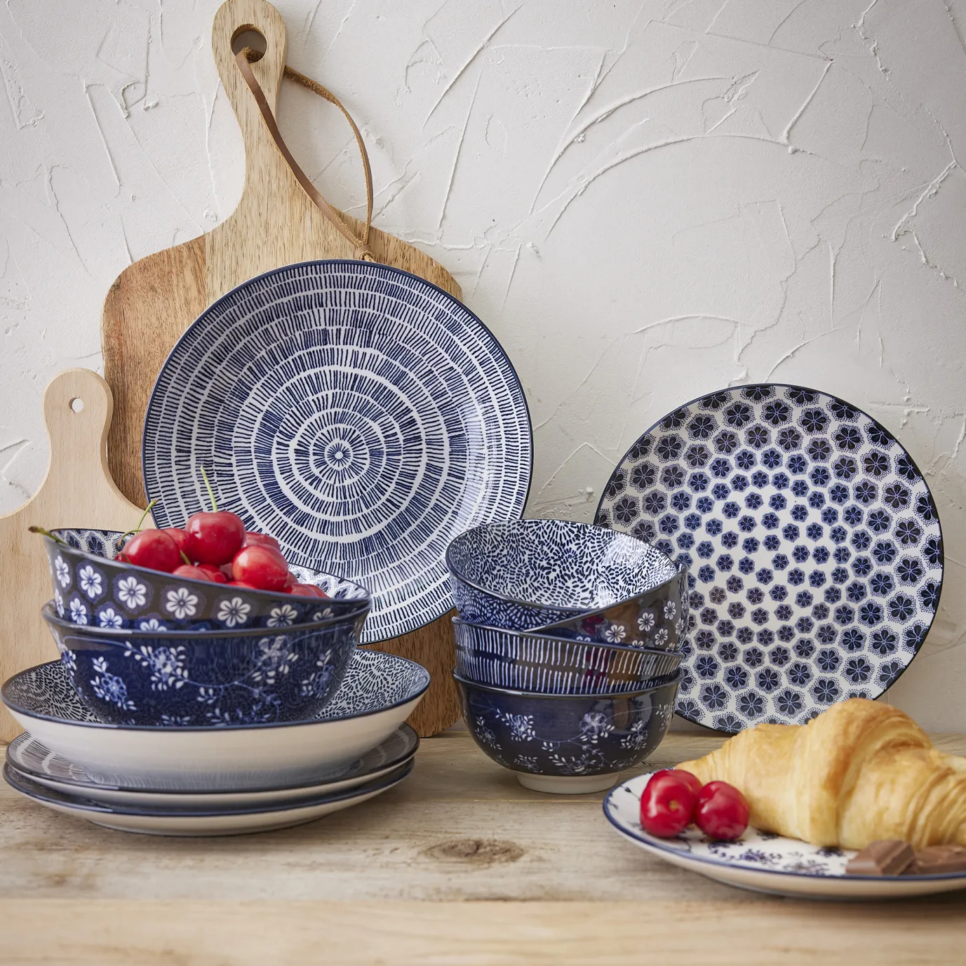 Diese Porzellanschale aus unserer Serie Anna ist perfekt, um Salaten, Pastagerichte oder andere Leckereien zu servieren. Das Muster sorgt für Abwechslung auf dem Tisch und lässt weißes Geschirr ganz schön blass aussehen.
