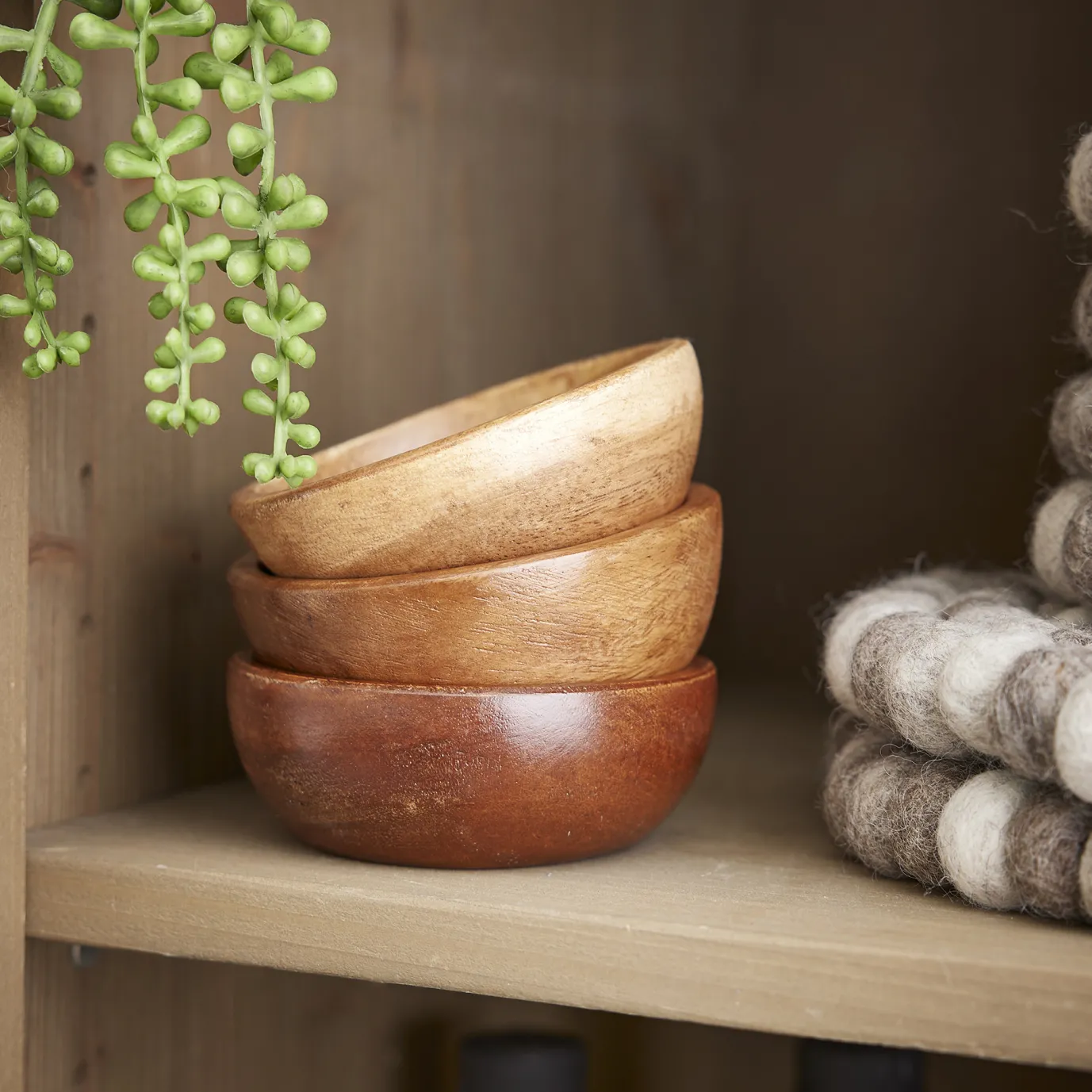 Mit dieser Dekoschale lassen sich Dips, Snacks und andere Kleinigkeiten servieren, denn sie ist für Lebensmittel geeignet. Der natürliche Holz-Look verleiht deinem gedeckten Tisch zudem eine gemütliche Atmosphäre