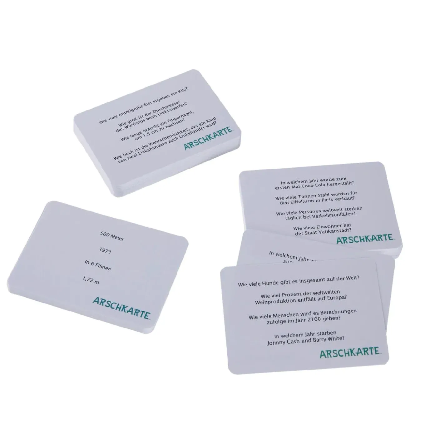 Mach Dich gefasst auf jede Menge absurde Schätzungen und lustige Antworten! Arschkarte ist das perfekte Mitbringsel und ein echter Stimmungsmacher für Partys, Familienfeiern oder gelungene Spieleabende.