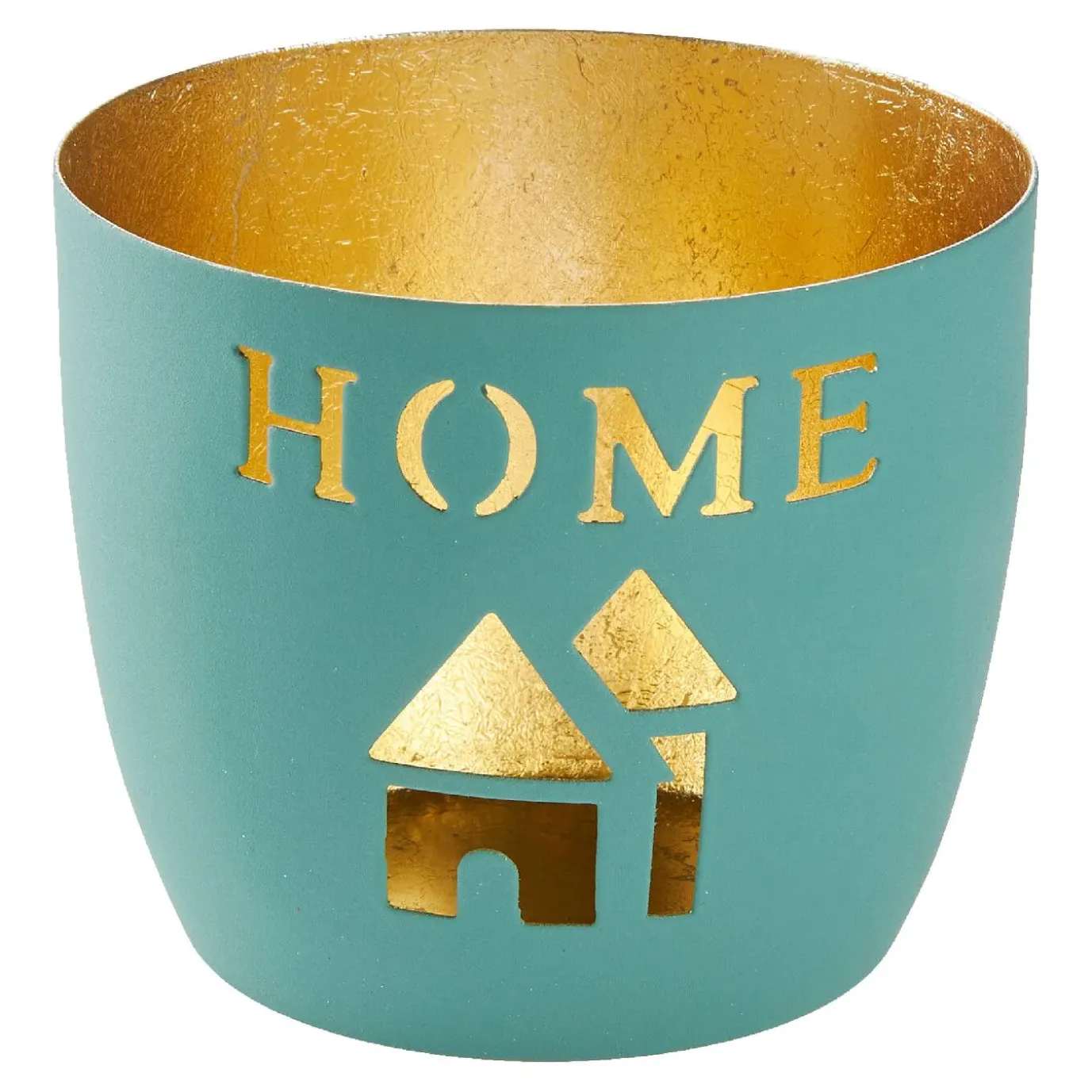 Windlicht Spruch, Home/türkis, 10 X 8.5 Cm