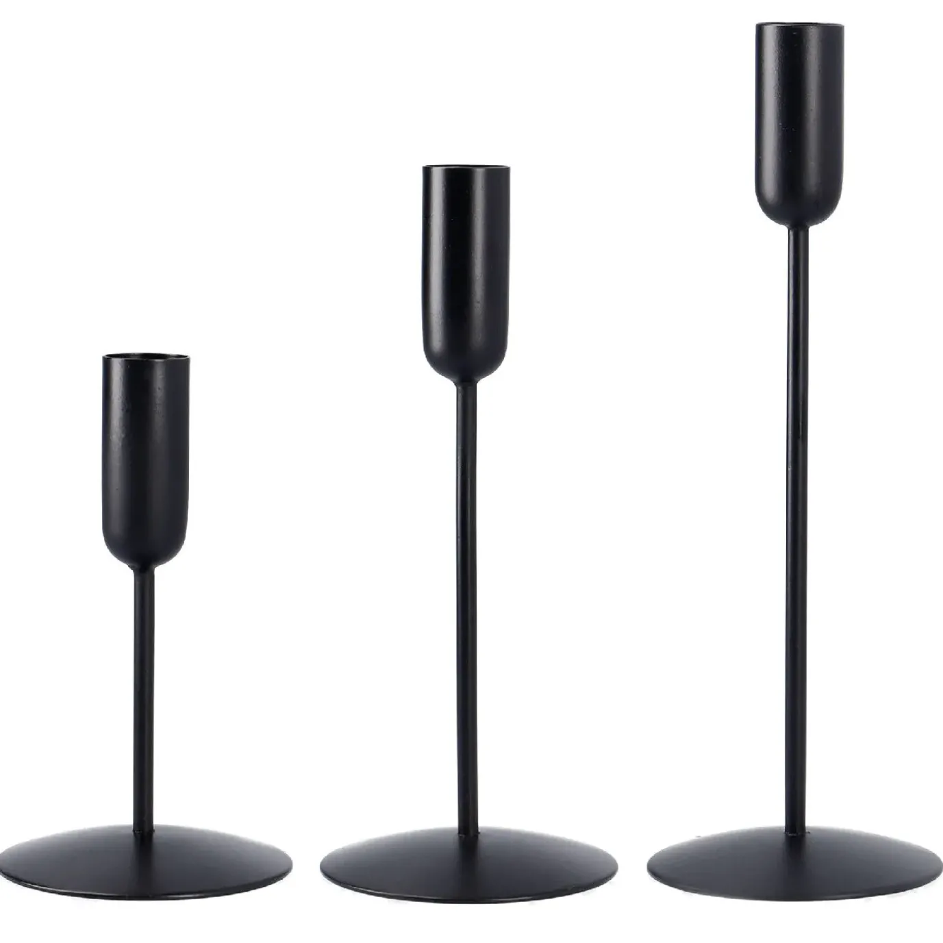 3er Set Kerzenständer, Stabkerzen, Schwarz Matt