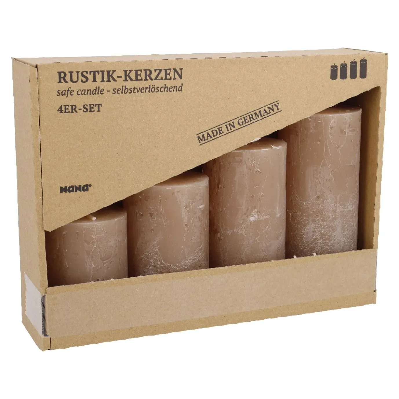 4er Set Kerze Rustik, Gestuft, Karamell
