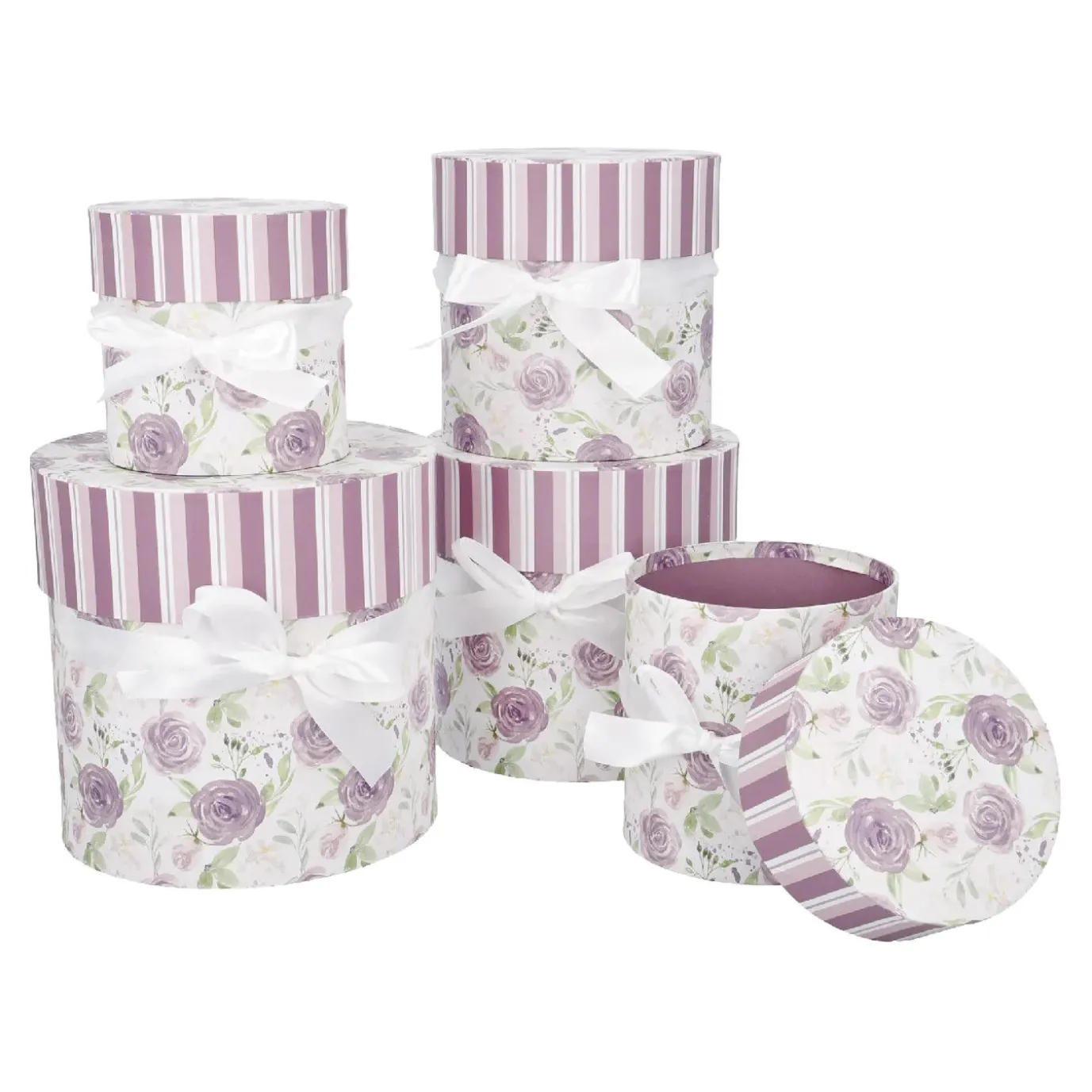 5er Set Geschenkkarton Rosenl/rund, Lila
