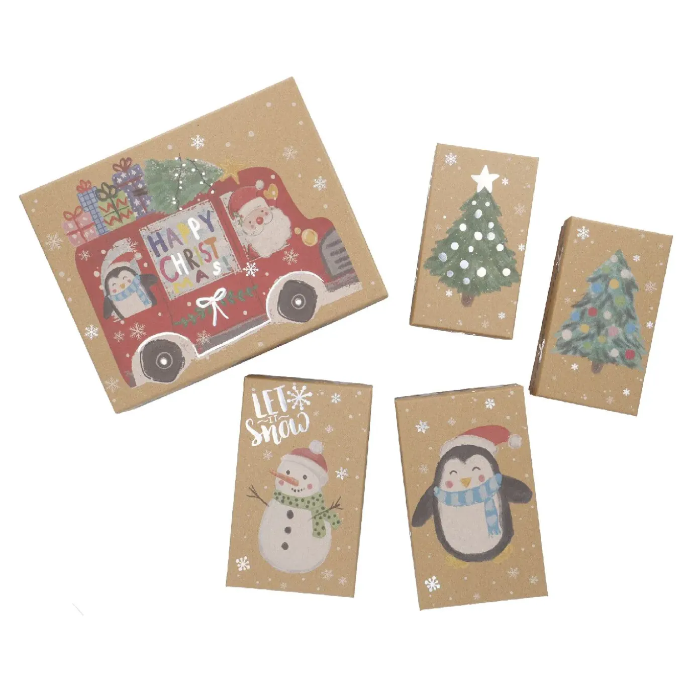 Das Set enthält fünf hochwertige Geschenkkartons in verschiedenen festlichen Designs. Ob du Geschenke für Familie, Freunde oder Kollegen verpackst, diese Kartons verleihen jedem Präsent eine fröhliche und festliche Note.