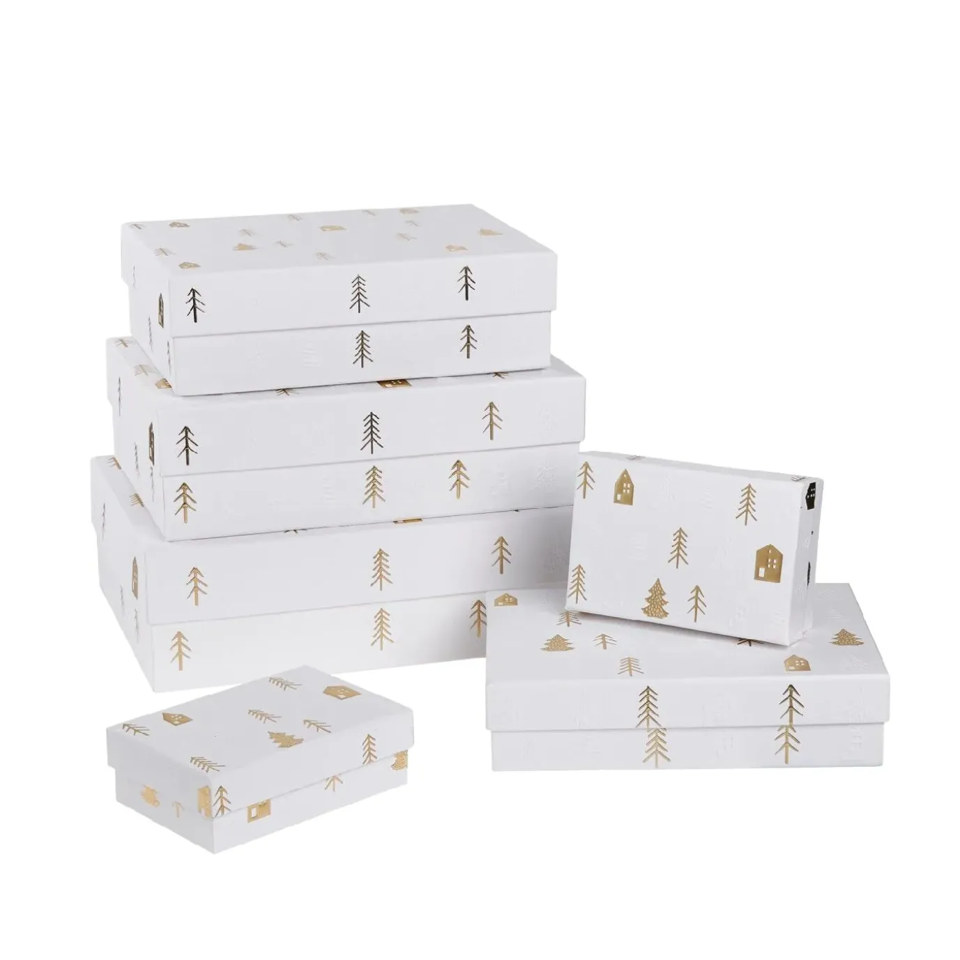Entdecke unser Set mit sechs weihnachtlichen Geschenkkartons in Weiß, die für jede Geschenkgröße die perfekte Verpackung bieten. Mit verschiedenen Größen und festlichen Designs bist du bestens ausgestattet, um alle deine Geschenke stilvoll zu verpacken.