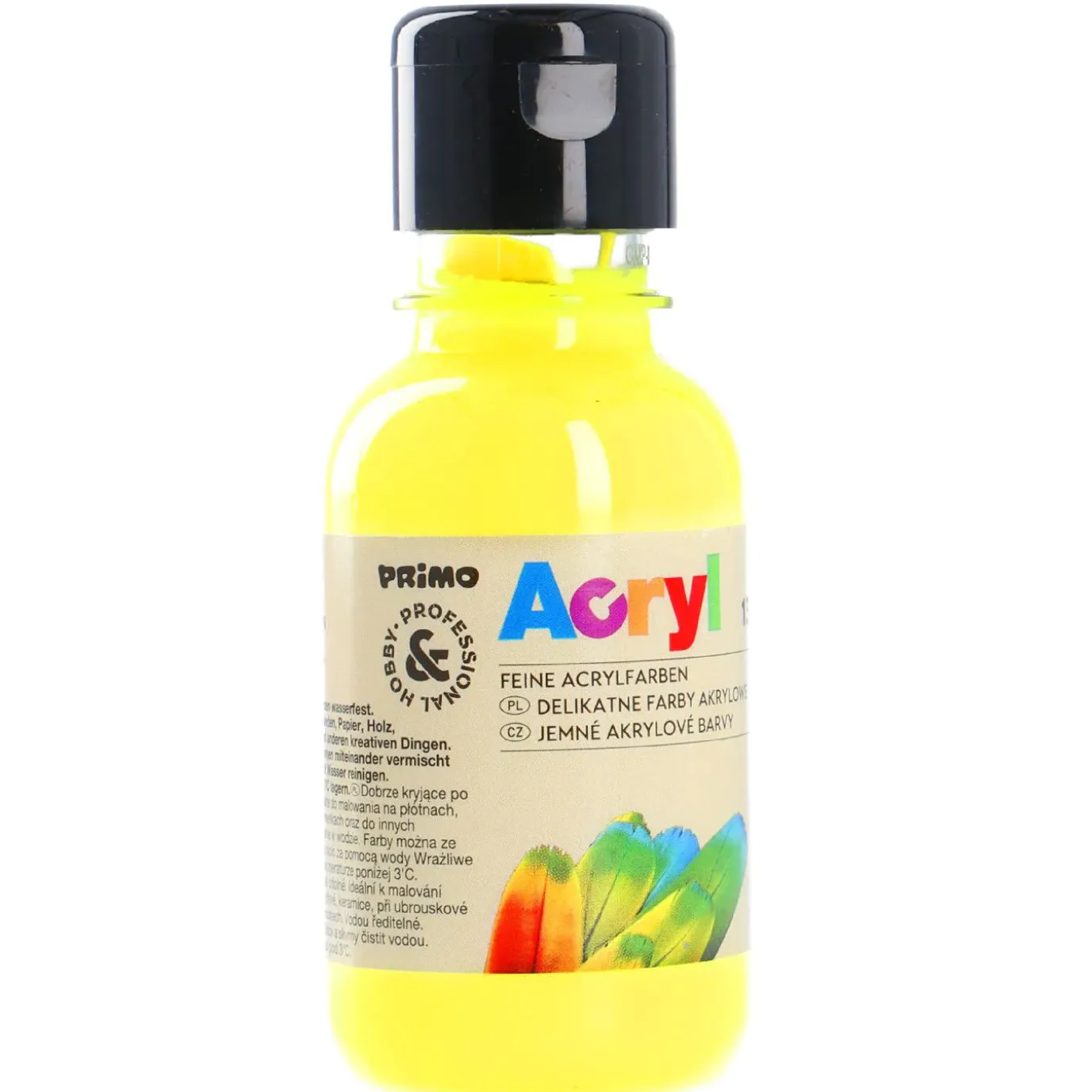 Für Hobby-Maler: Diese gelbe Acrylfarbe eignet sich zum Bemalen von Leinwänden, Papier, Holz und Keramik. Sie deckt gut und ist nach dem Trocknen wasserfest.Acrylfarbe auf Wasserbasis für Kunst- und Hobbyzweck.Unterschiedliche Farben können miteinander gemischt werden. Nicht unter 3 Grad Celsius aufbewahren! In der Packung sind 130 ml Farbe enthalten.