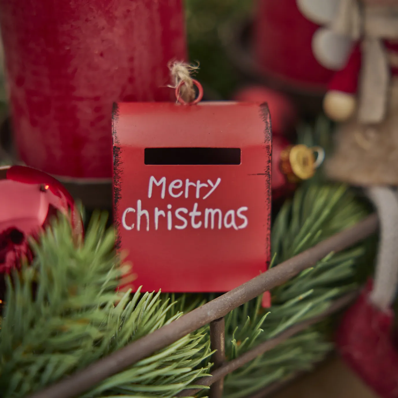 Eine kleiner Deko Briefkasten als Anhänger für Briefe an den Weihnachtsmann.