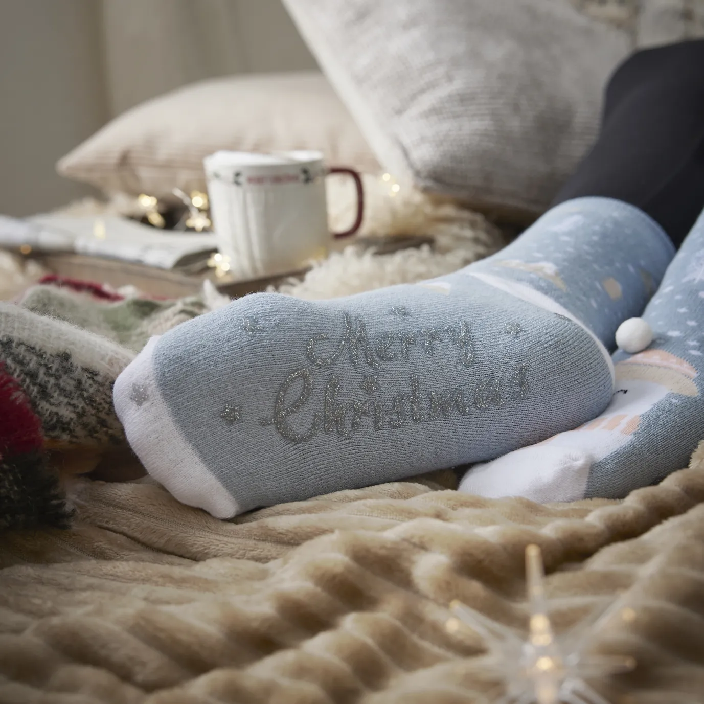 Socken für zu Hause: In diesen kuscheligen Socken mit weihnachtlichem Eisbär und Anti-Rutsch-Beschichtung behältst du im Winter garantiert warme Füße.