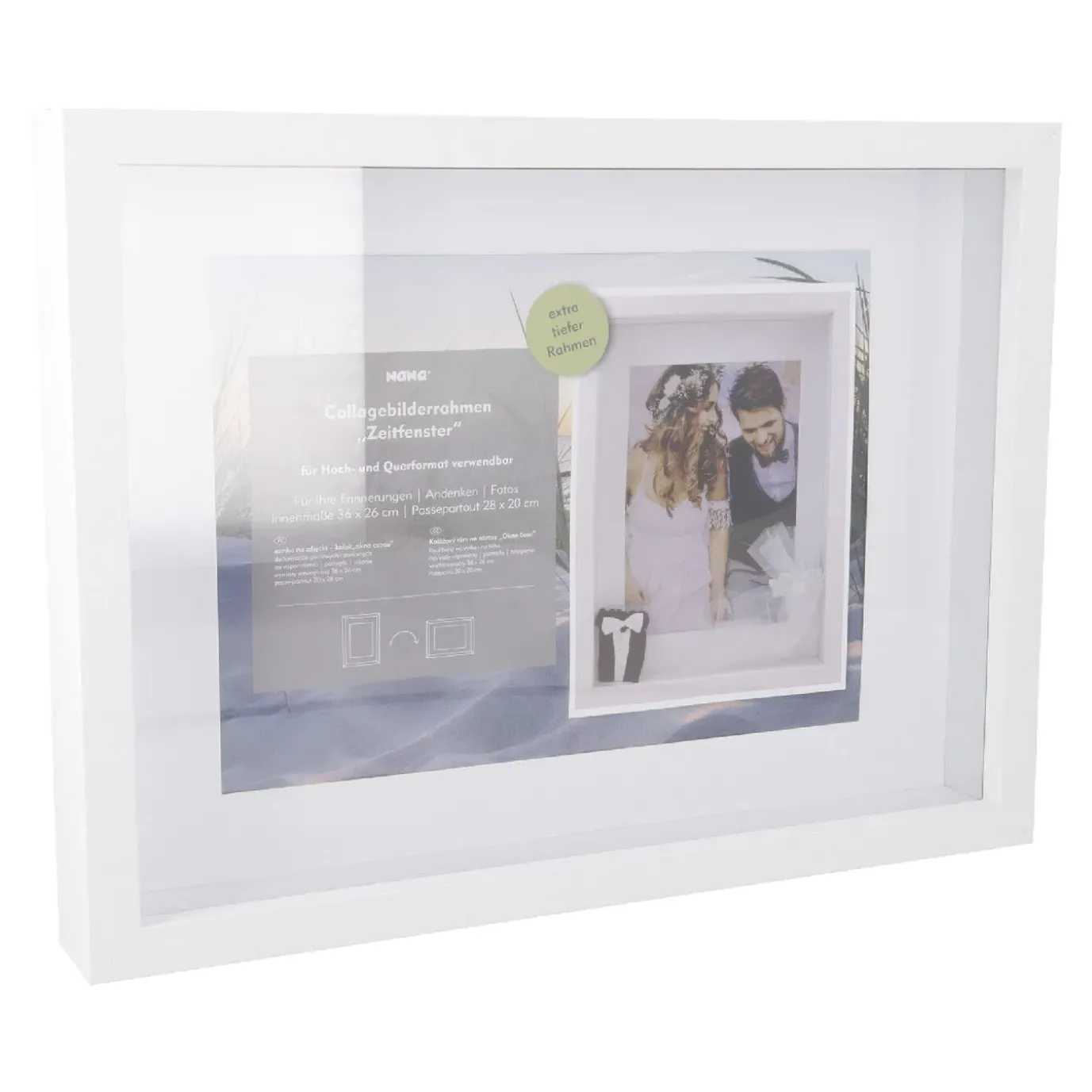 Achtung! Dieser Bilderrahmen mit Wechselfunktion (Bild vorne oder hinten) ist nur online verfügbar. In unseren Filialen ist dieser Bilderrahmen ohne Wechselfunktion erhältlich. Dort können die Bilder nur in der Tiefe positioniert werden.