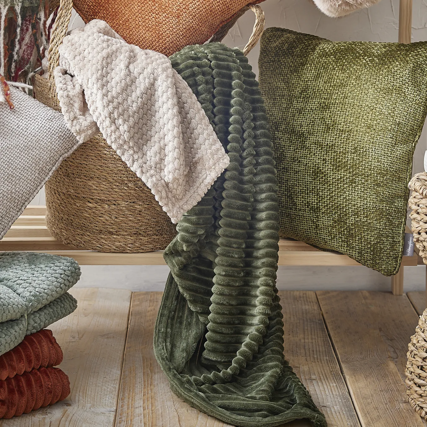 Verleih deinem Raum Gemütlichkeit mit der flauschigen Wohndecke in Taupe im Waben-Design. Extra weich und stilvoll für entspannte Momente.