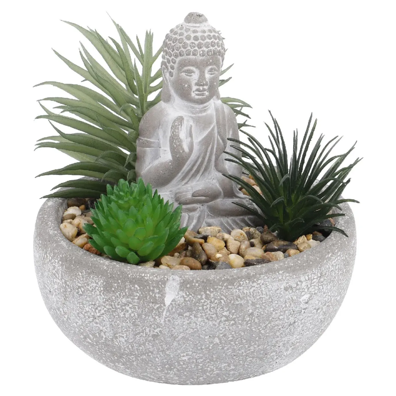 Deko-Objekt Buddha Mit Sukkulente, Grau/grün, 12 Cm