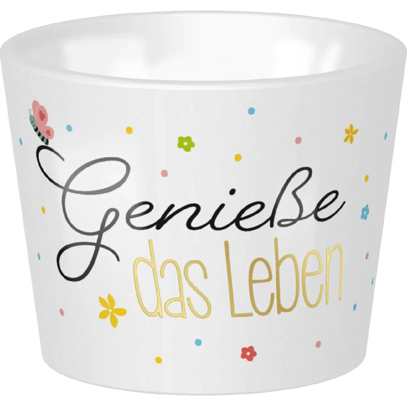 »Genieße das Leben« ist die fröhliche Botschaft auf diesem Eierbecher mit bunten Farbdetails und angesagtem Golddruck. Das süße Mitbringsel zu Ostern oder zum Geburtstag ist garantiert ein echter Blickfang auf dem Frühstückstisch!