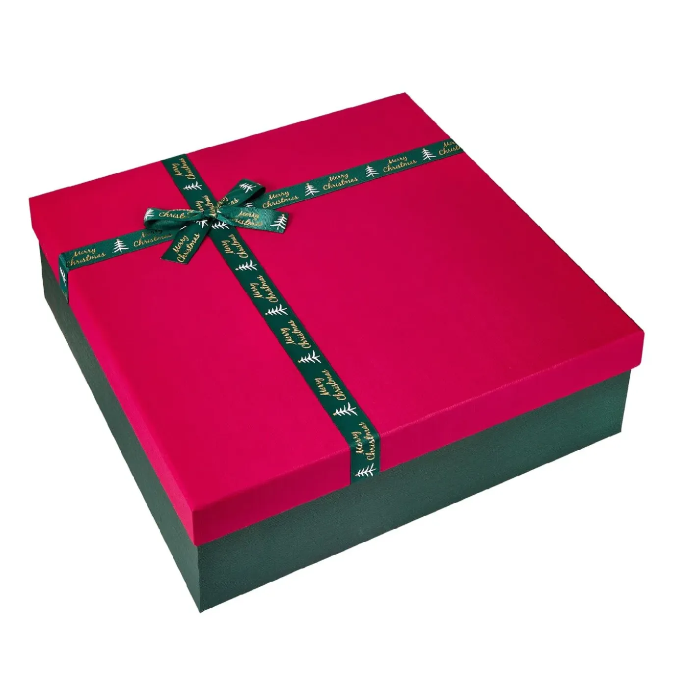 Geschenkkarton Schleife, Dunkelgrün/rot, 40 X 40 Cm