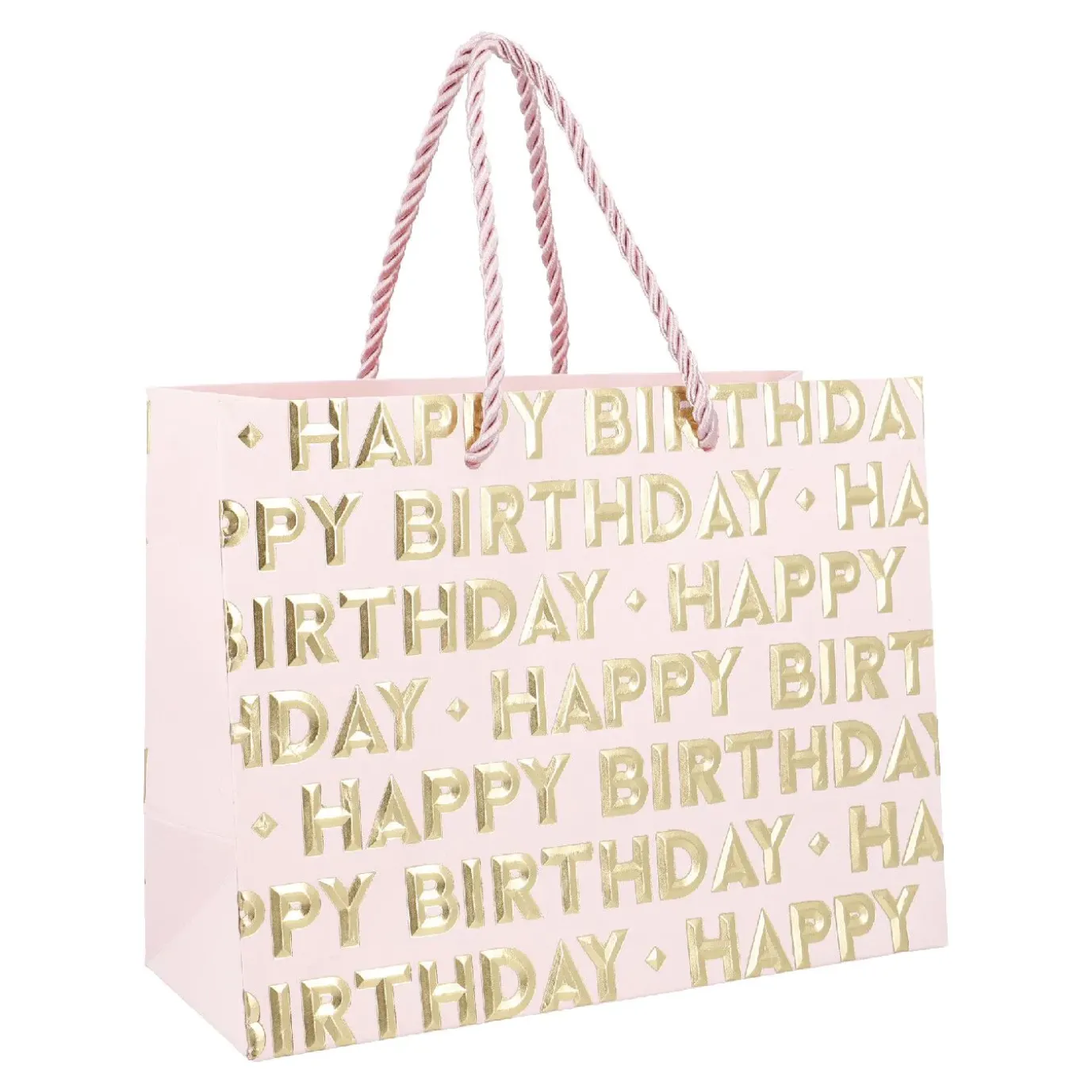 Die rosafarbene Geschenktüte mit der Aufschrift „Happy Birthday“ ist die ideale Lösung, um deine Geburtstagsgeschenke stilvoll zu verpacken.