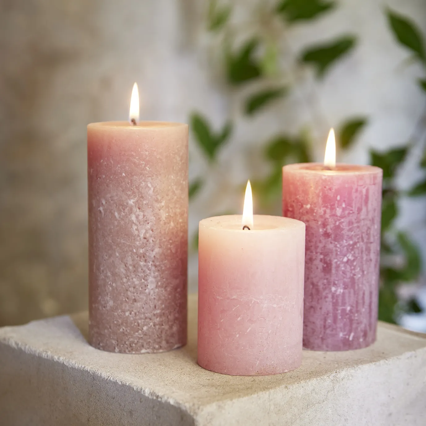 Stimmungsvolles Kerzenlicht verbreitet diese altrosafarbene Stumpenkerze. Ideal für deine eigenen vier Wände, Hochzeiten oder Feiern.