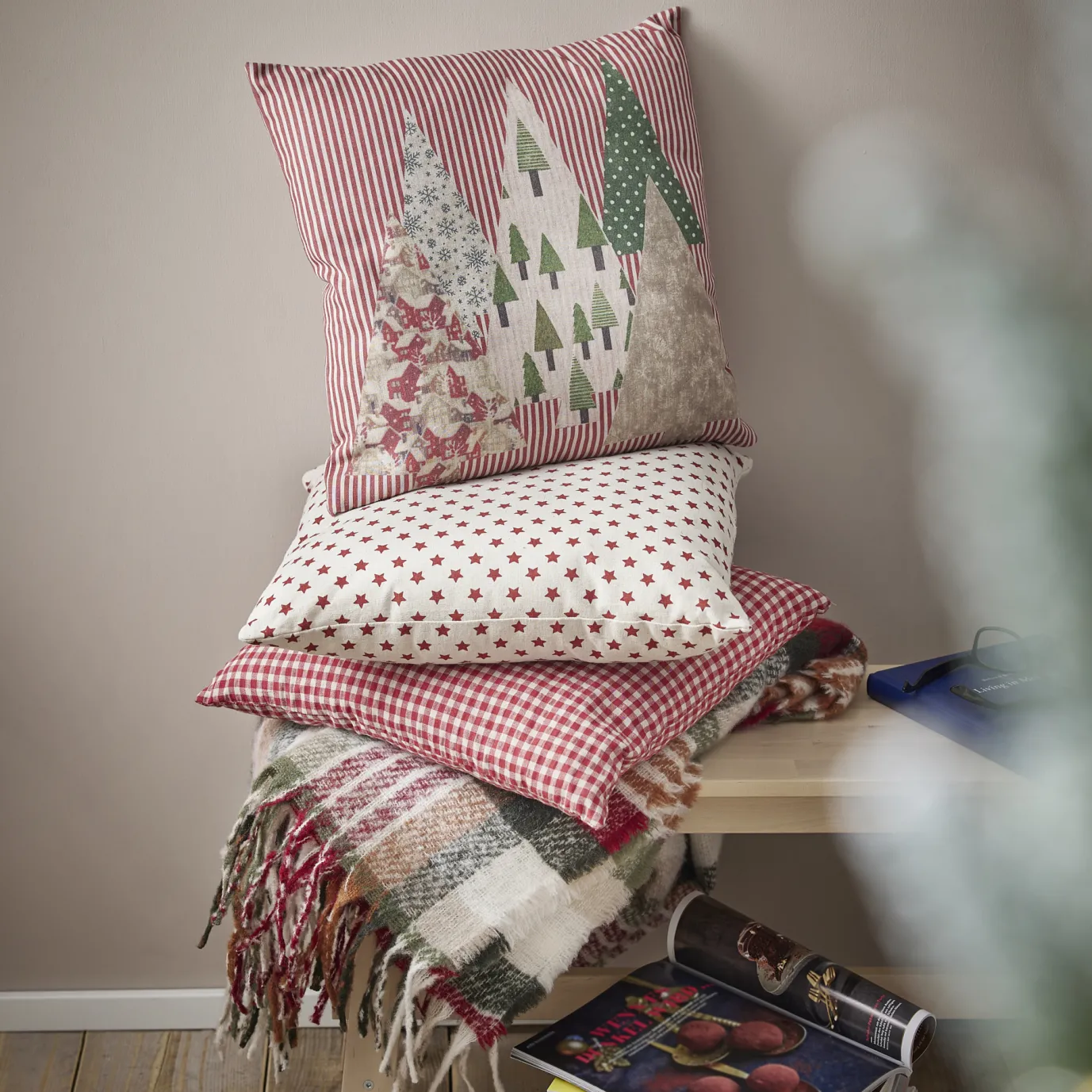 Kissen Xmas-Muster, Tanne/Streifen, 45 X 45 Cm