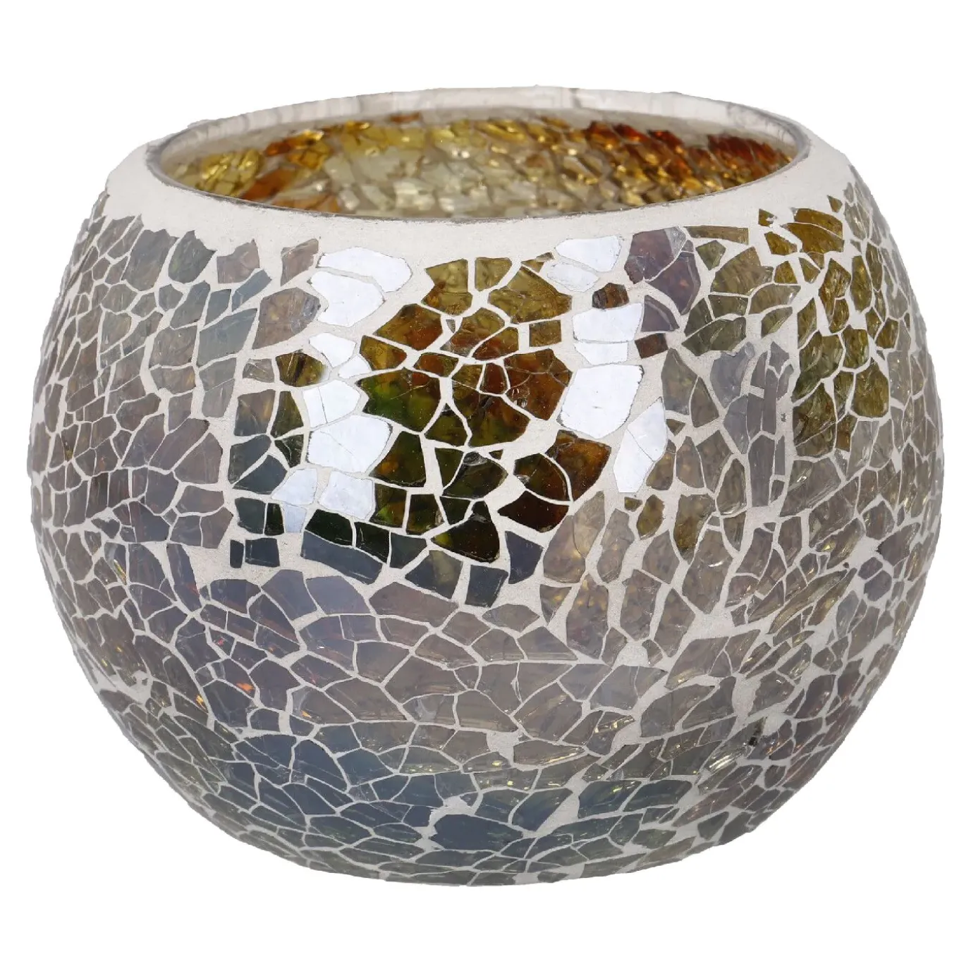 Kugel-Windlicht Mosaik, Bernstein/silber/grün, 10 X 8 Cm