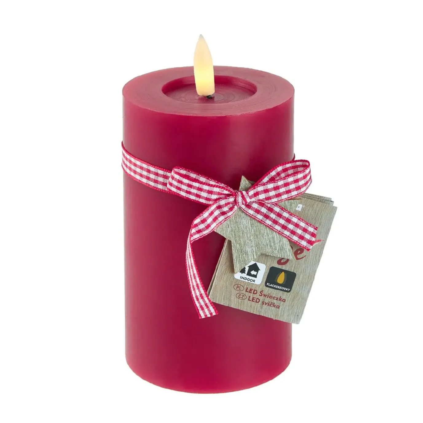 LED-Kerze Schleifenband, Stern/rot, 7.5 X 10 Cm