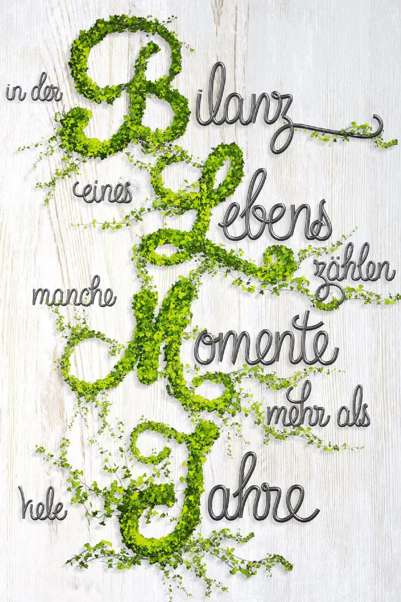 In der Bilanz eines Lebens zählen manche Momente mehr als viele Jahre. Verschönere mit diesem schönen Spruch deine Wände. Das leuchtende Grün bildet einen schönen Kontrast zum hellen Hintergrund.