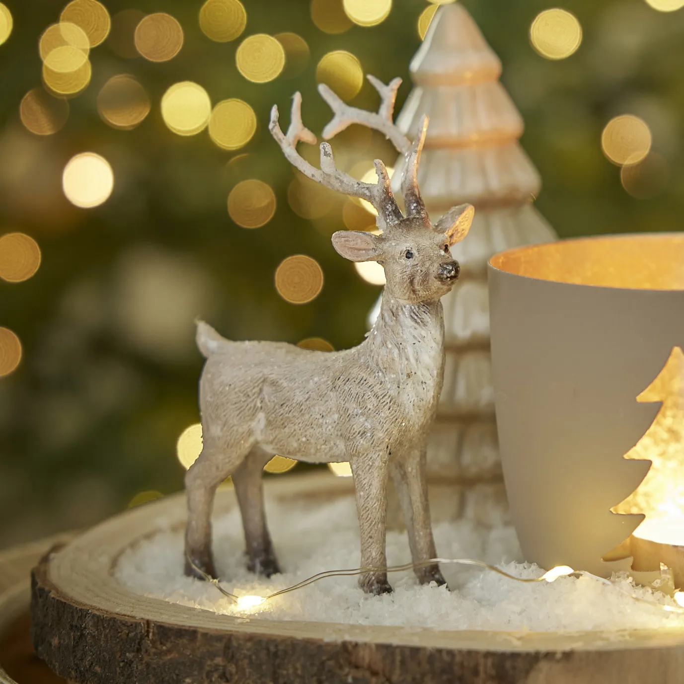 Du liebst es natürlich? Dann passt dieses Rentier mit verschneitem Geweih perfekt in deine Weihnachtsdeko. Ob im Adventsgesteck, auf einem Tablett oder drappiert in einer Kugelvase – die Dekoideen mit diesem niedlichen Rentier sind vielfältig.